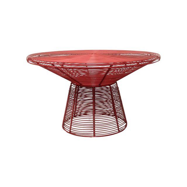 A red, Tatu coffee table From Artecnia that was manufactured for the Design With Conscience project. Steel wire is deliciously airy, visually pliant and weather resilient in brilliant modular furniture by celebrated designer Stephen Burks. Hand-woven in South Africa by artisans working closely with the designer, TaTu meshes traditional with urbane. The coffee table breaks down into a large tray, bowl and basket. This is the perfect indoor and outdoor piece.