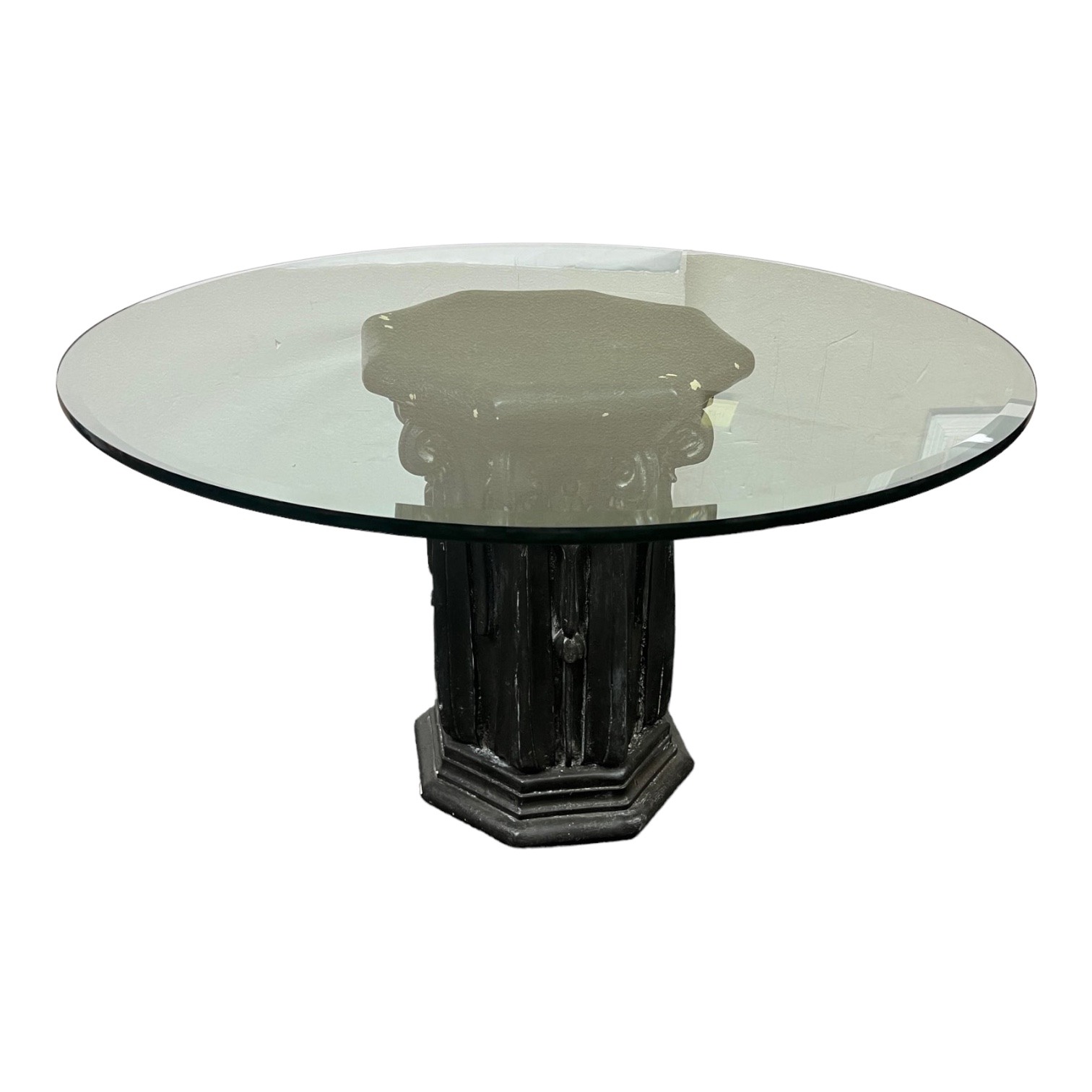 / Regency Style Round Glass Top Column Pedestal Dining Table