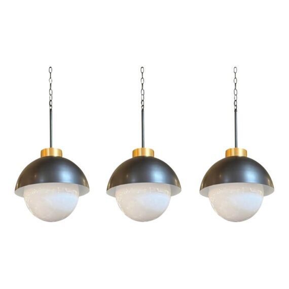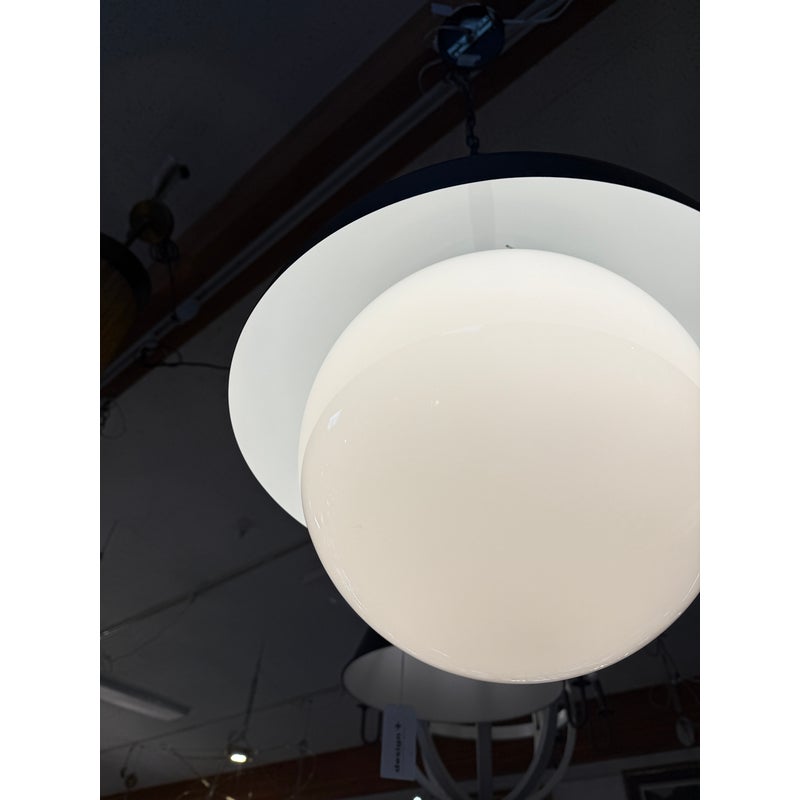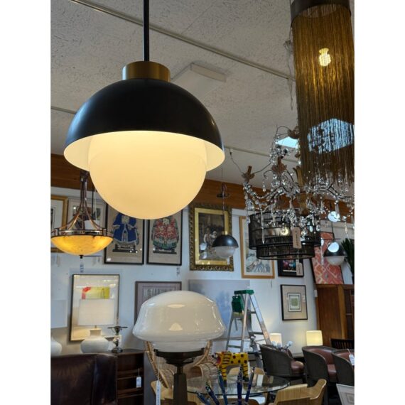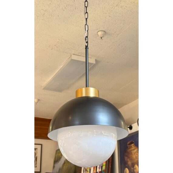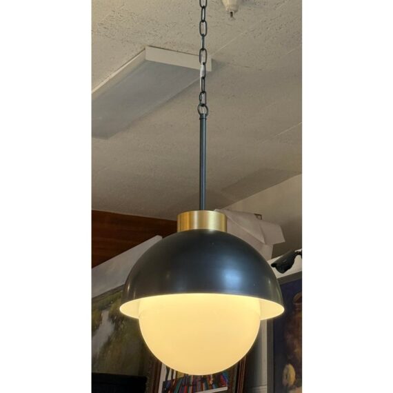 Design Plus Gallery presents a Montreux Pendants from Regina Andrew. The finish is Oil Rubbed Bronze. All the best aspects of a fixture come together in this modern statement piece for your home. Features a gracefully curved metal shade paired with a generous milk glass globe, creating a beautiful balance of form and function. Its milk glass softly diffuses light, flooding your space with warm, ambient illumination, while the Oil Rubbed Bronze finish adds depth and sophistication. In good condition, visible and minimal wear from usage.
