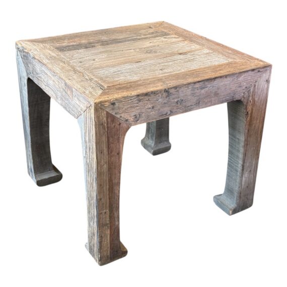 Design Plus Gallery presents a 17th Century Ming Dynasty Side Table from Restoration Hardware. The silhouette is inspired by ancient shapes, while it is executed in reclaimed aged solid wood to lovely effect. Aged vintage appearance is intentional; condition is good.