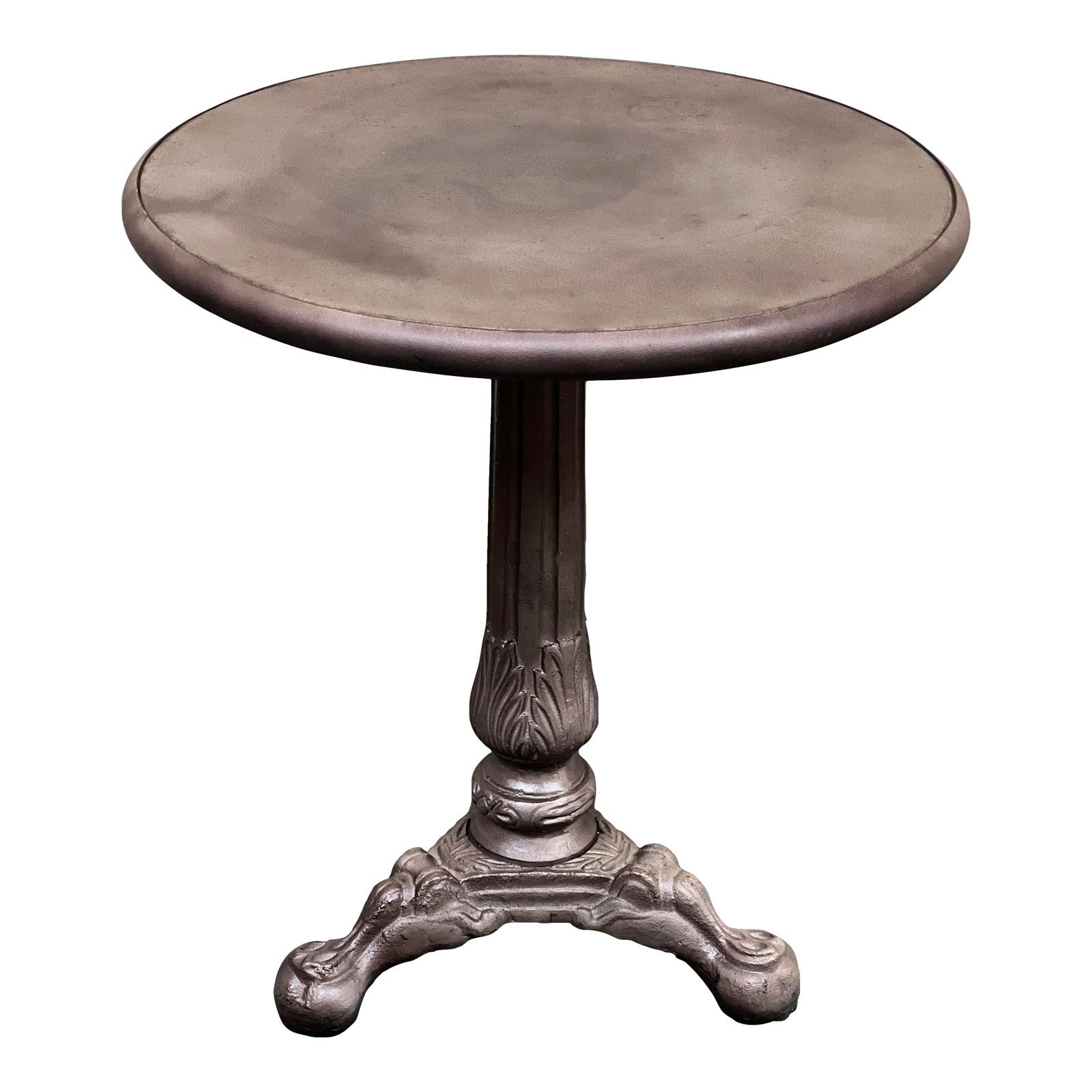 Design Plus Gallery presents an Acanthus Bistro Table by Restoration Hardware. A common sight in the 1800s, cafés in France served their clientele at tables similar to this. This classic reproduction references neoclassical details including a patina of age. Vintage appearance is intentional; good condition overall.