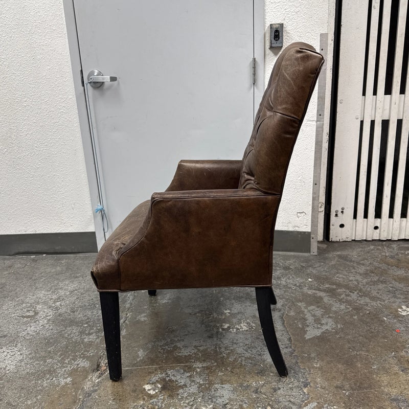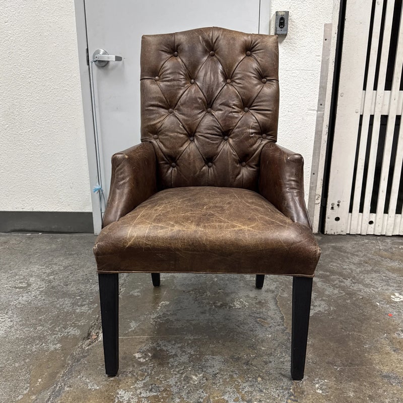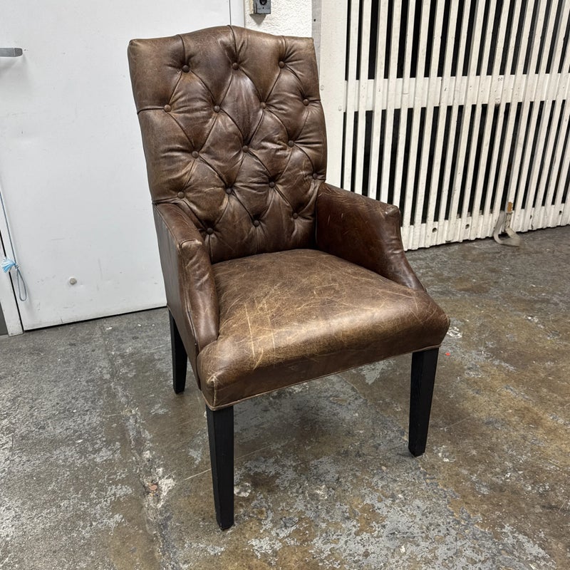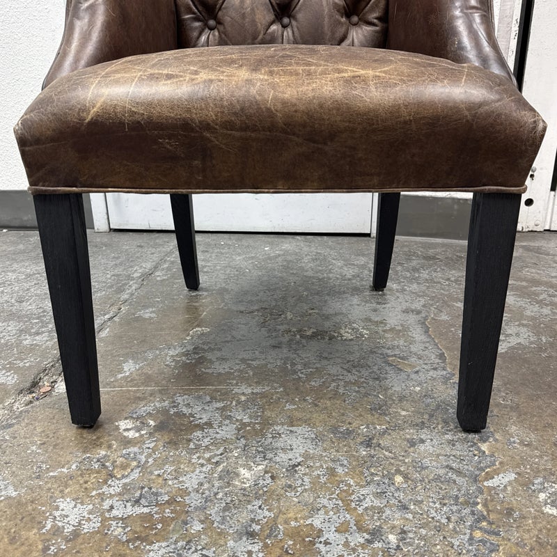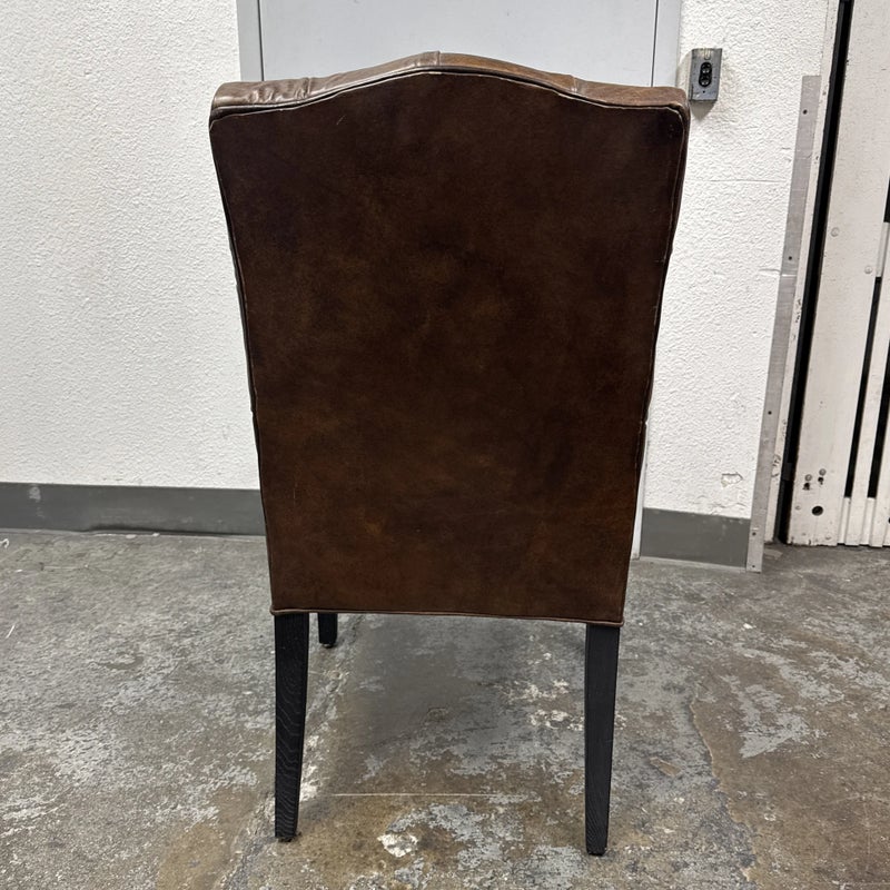 Design Plus Gallery presents the Bennett Parsons Brompton Cocao Leather Dining Arm Chair from Restoration Hardware. Deeply cushioned and generously sized, it’s a comfortable spot for dining and conversation. Due to its graceful curves + elegant silhouettes, this can double as a great home office chair. The chair shows signs of visible wear that are consistent with usage.