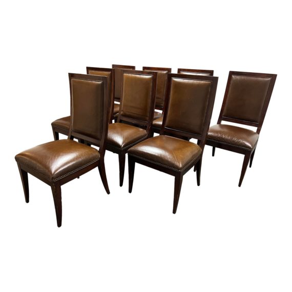 Restoration Hardware Brown Leather + Nailhead Trim Dining Chairs, Set of Eight