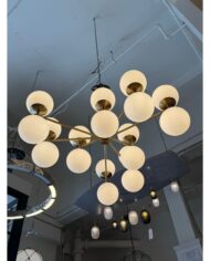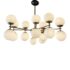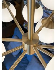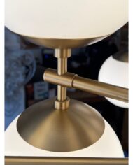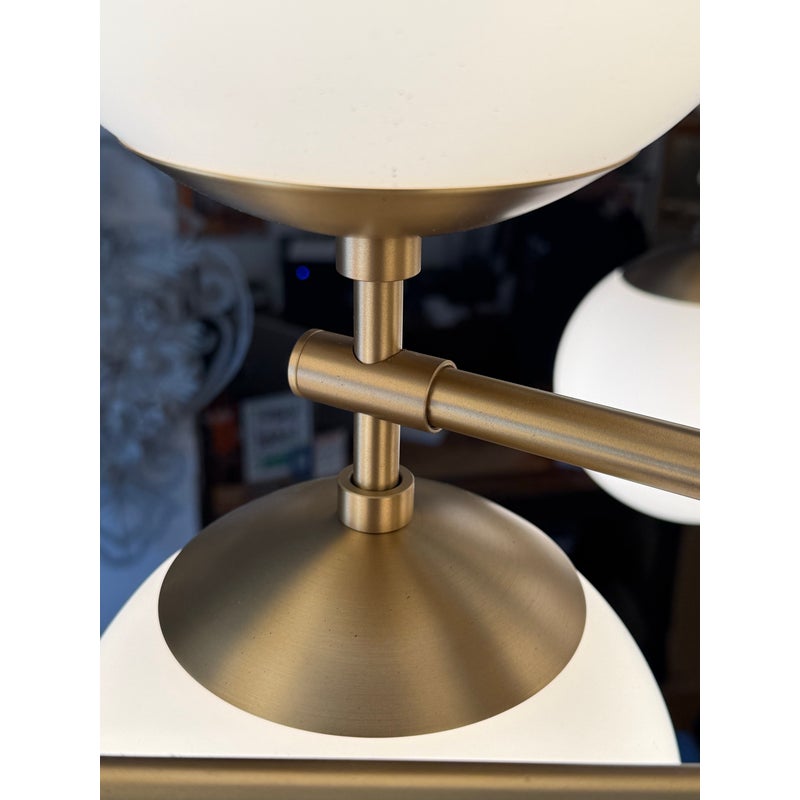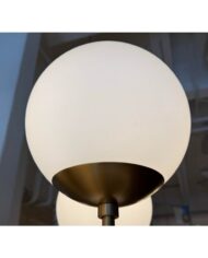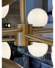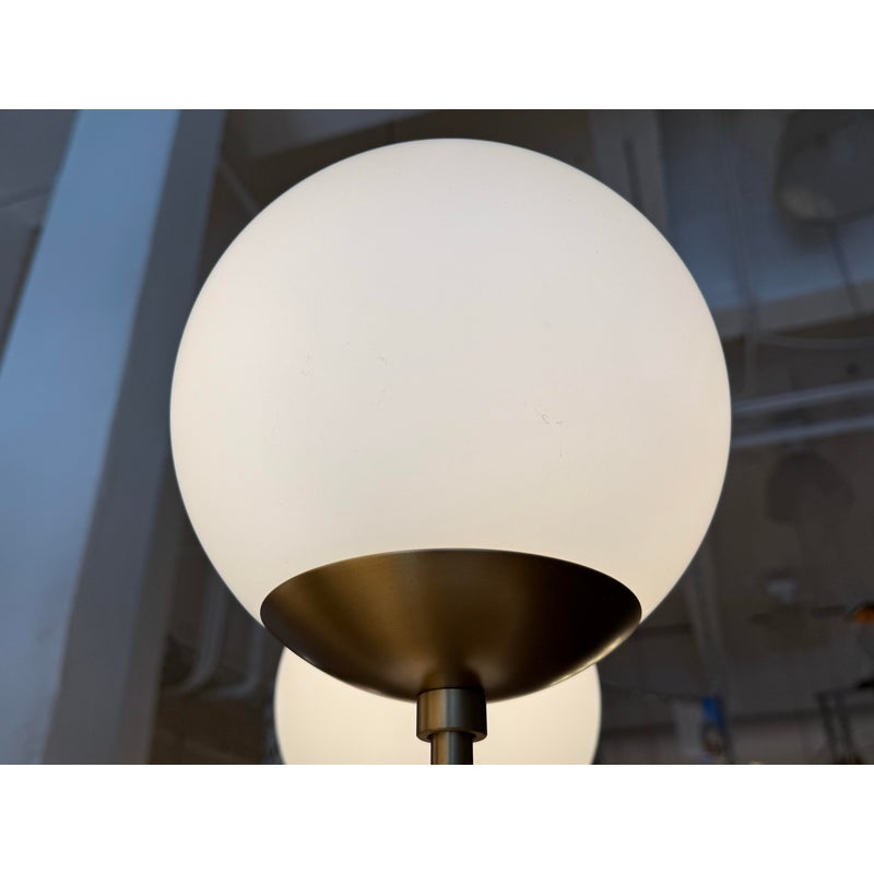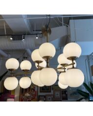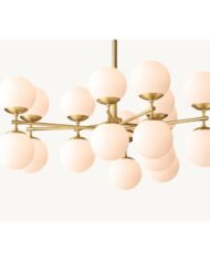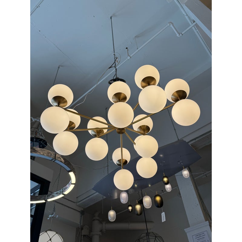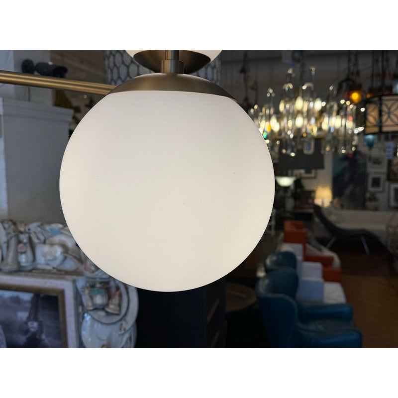 Design Plus Gallery presents the Cirque Linear Chandelier by Restoration Hardware. An elegant grouping of eighteen opal matte glass globes suspending from a refined frame. Arranged in tiers, its pure, modern form evokes celestial bodies floating in space. In good condition with minimal wear for its use + age.