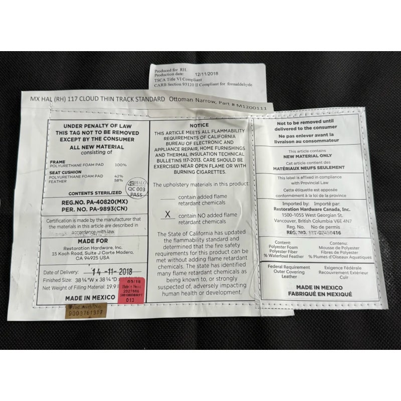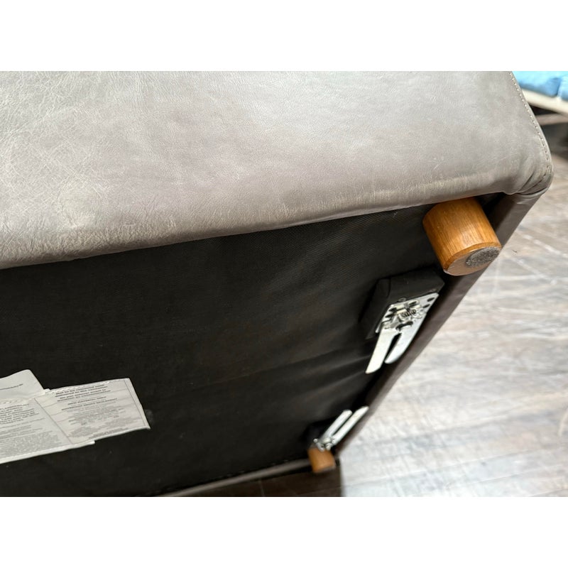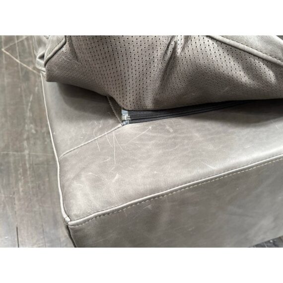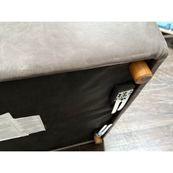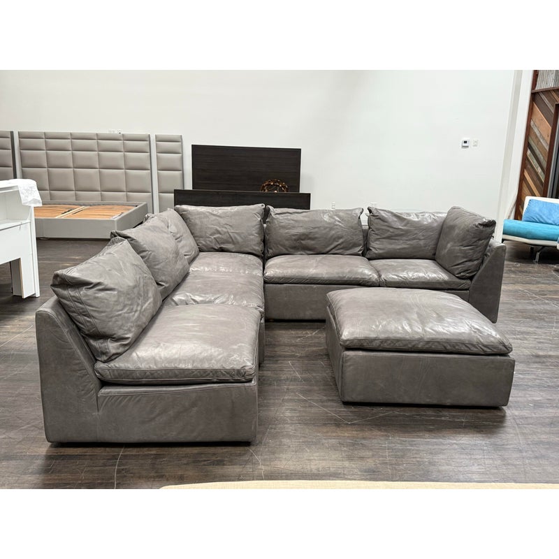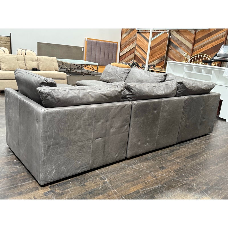 Design Plus Gallery presents the Cloud Modular Sectional from Restoration Hardware. This version of the brands Cloud is made up of four pieces; a corner piece, single armless chair, a full sofa, and ottoman. The Cloud was designed by Timothy Oulton and built for laid back lounging on what they believe to be the world’s most comfortable sofa. The Cloud features sink-in comfort of soft feather and down construction around a premium foam core for support. It’s a modern marriage of versatility, perfect proportions and unmatched comfort. Their Granite Cavalo leather wraps around its entirety and shows little visible wear for its usage. Made in Mexico.