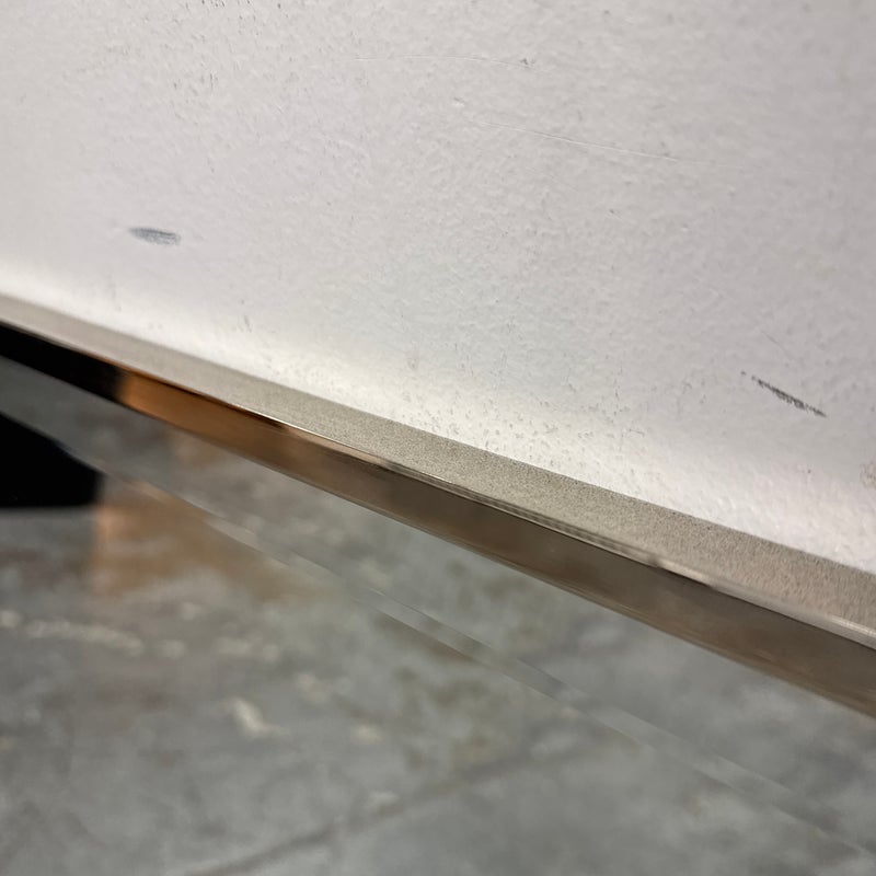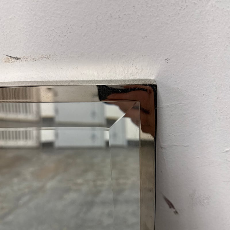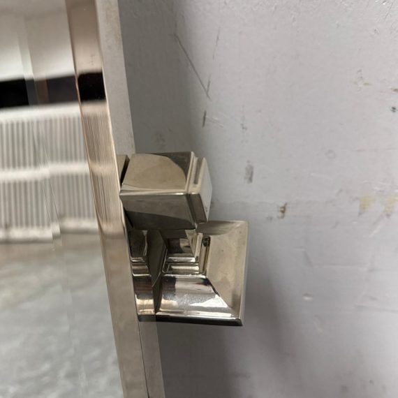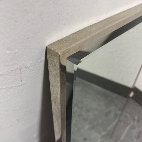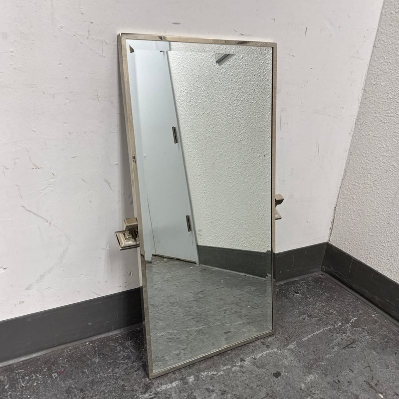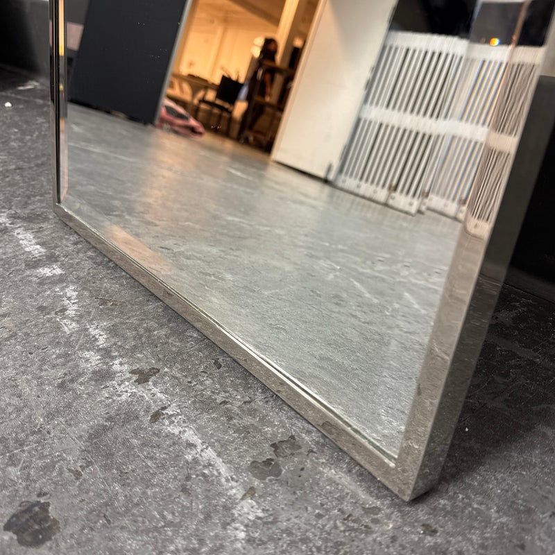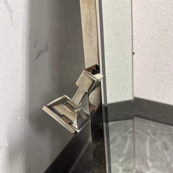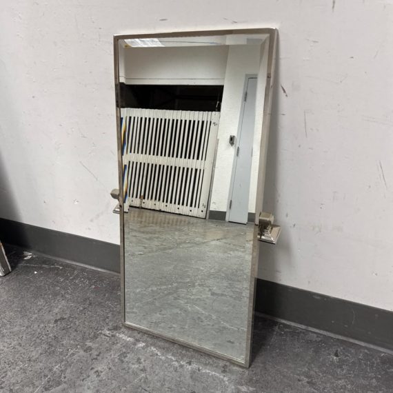 Design Plus Gallery presents a Dillon Classic Pivot Mirror by Restoration Hardware. Crisp angles and precision detailing create Dillon’s architectural attitude. With stepped finials, squared silhouettes and pedestal bases, the collection is a modern classic. In good condition, visible and minimal wear from usage. Made in China.