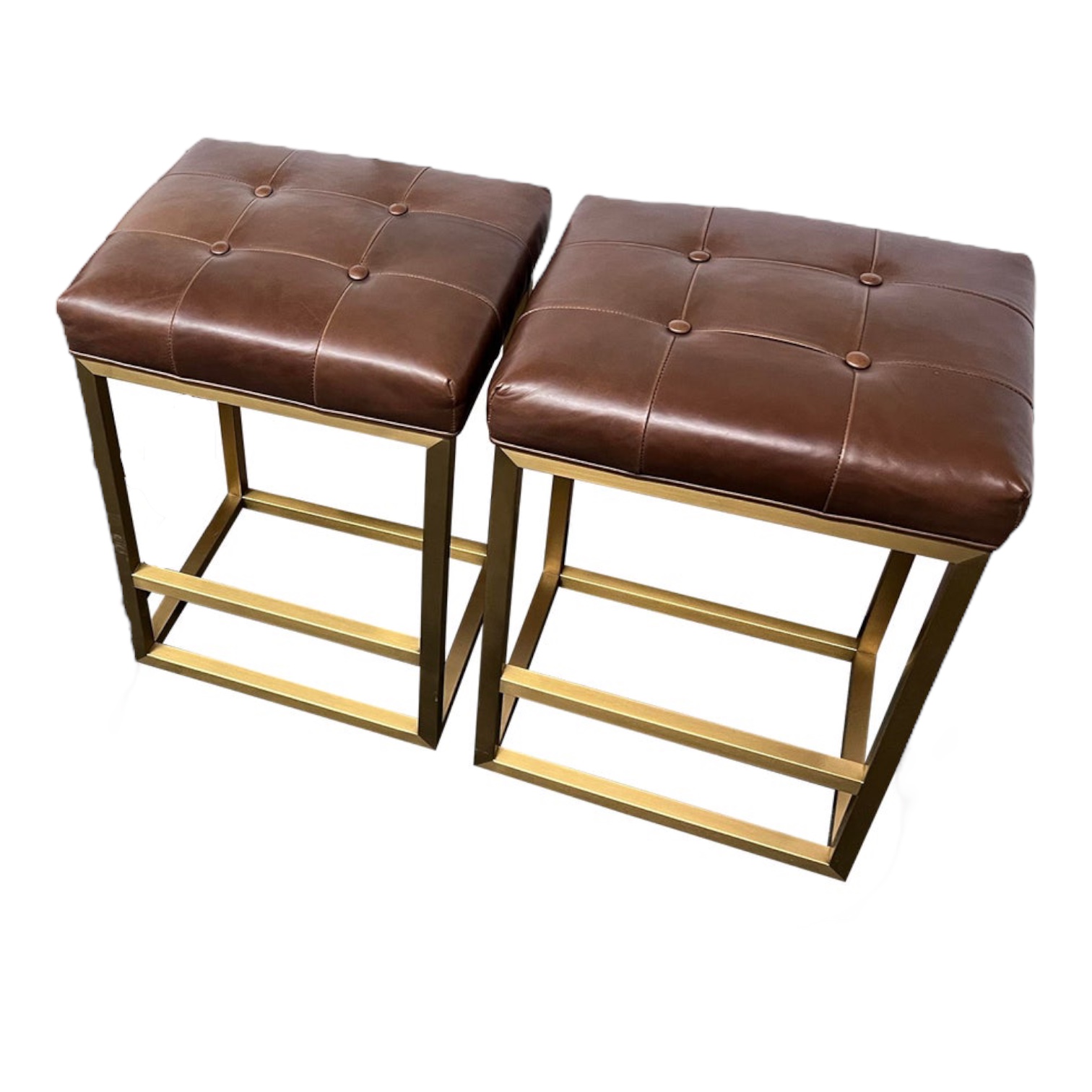 Restoration Hardware Emery Tufted Leather + Brass Counter Stools, Set of Two. Original Price: $3,950
