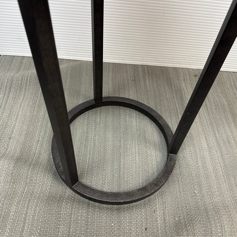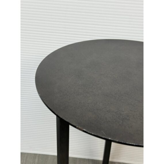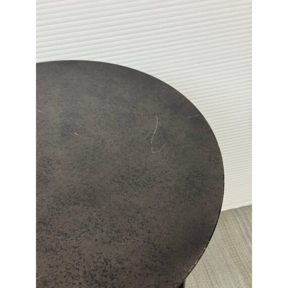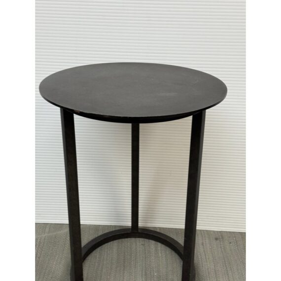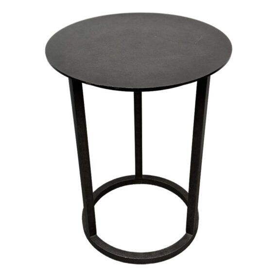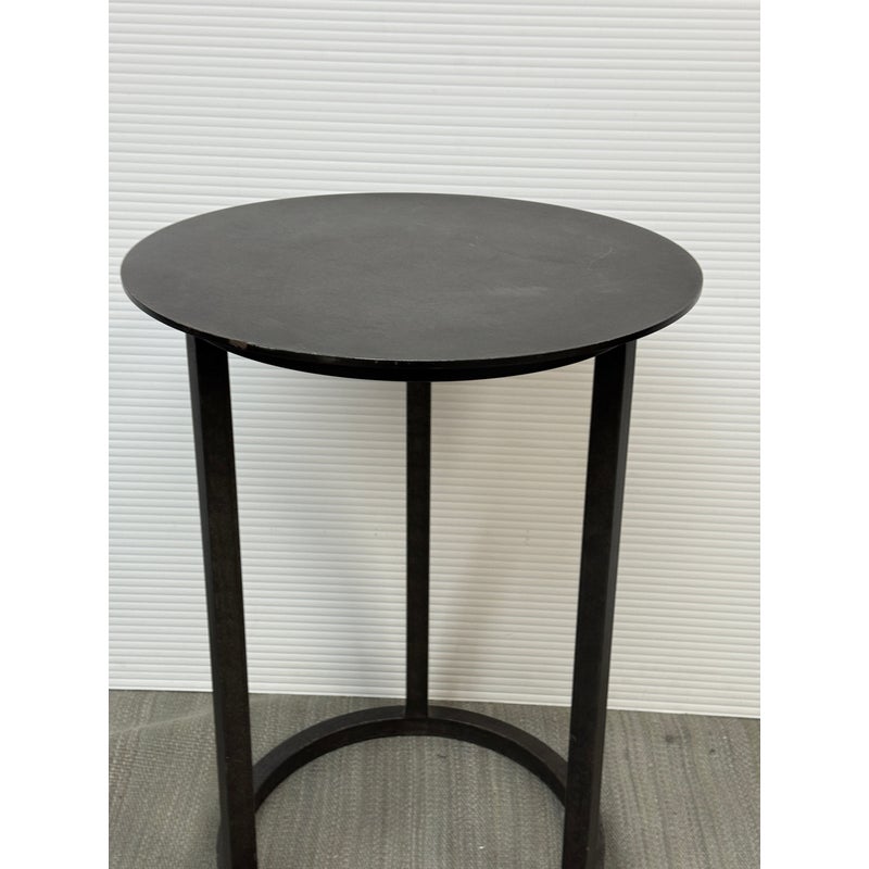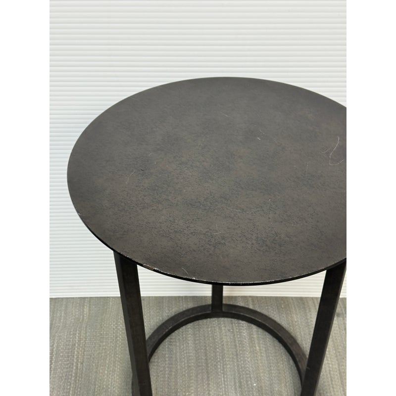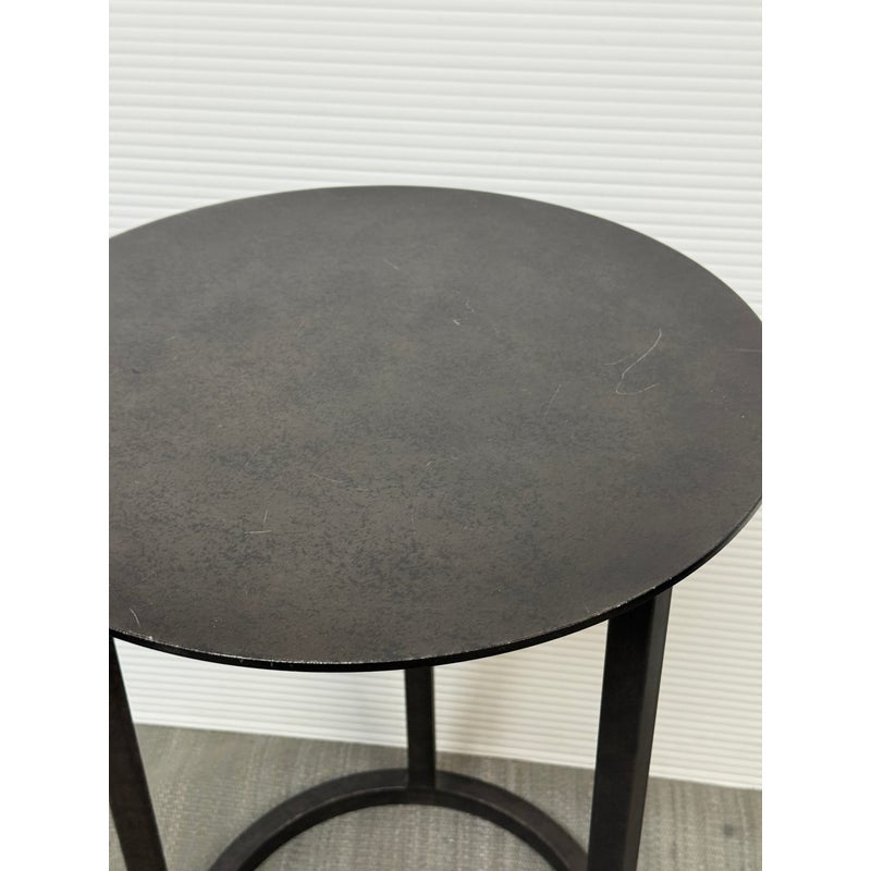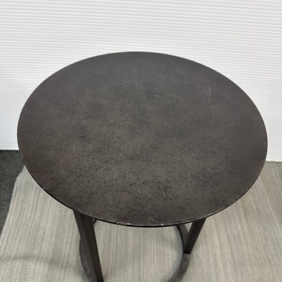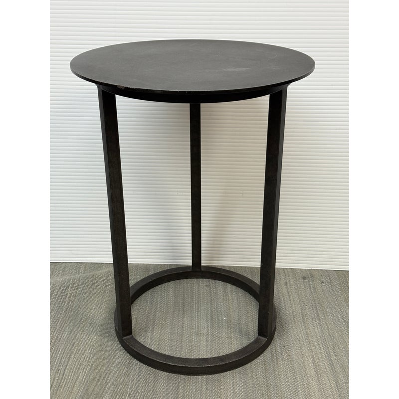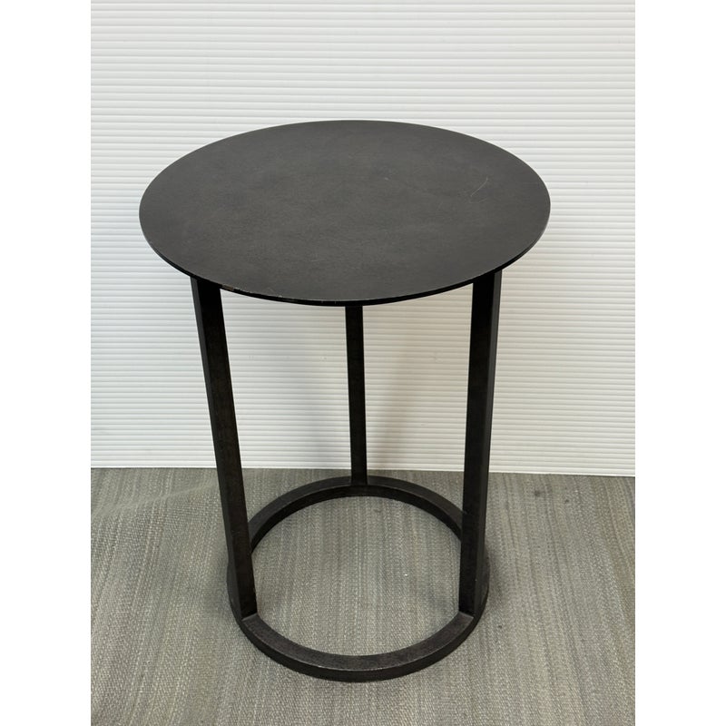 Design Plus Gallery presents the Mercer Side Table from Restoration Hardware. This modernist metal table references a pared-down industrial aesthetic of an original metal table. Its simple silhouette made with sheet metal is elevated by a ring base in natural steel finish. Light enough and scaled to be moved where needed. Light visible wear; condition is consistent with age and use.