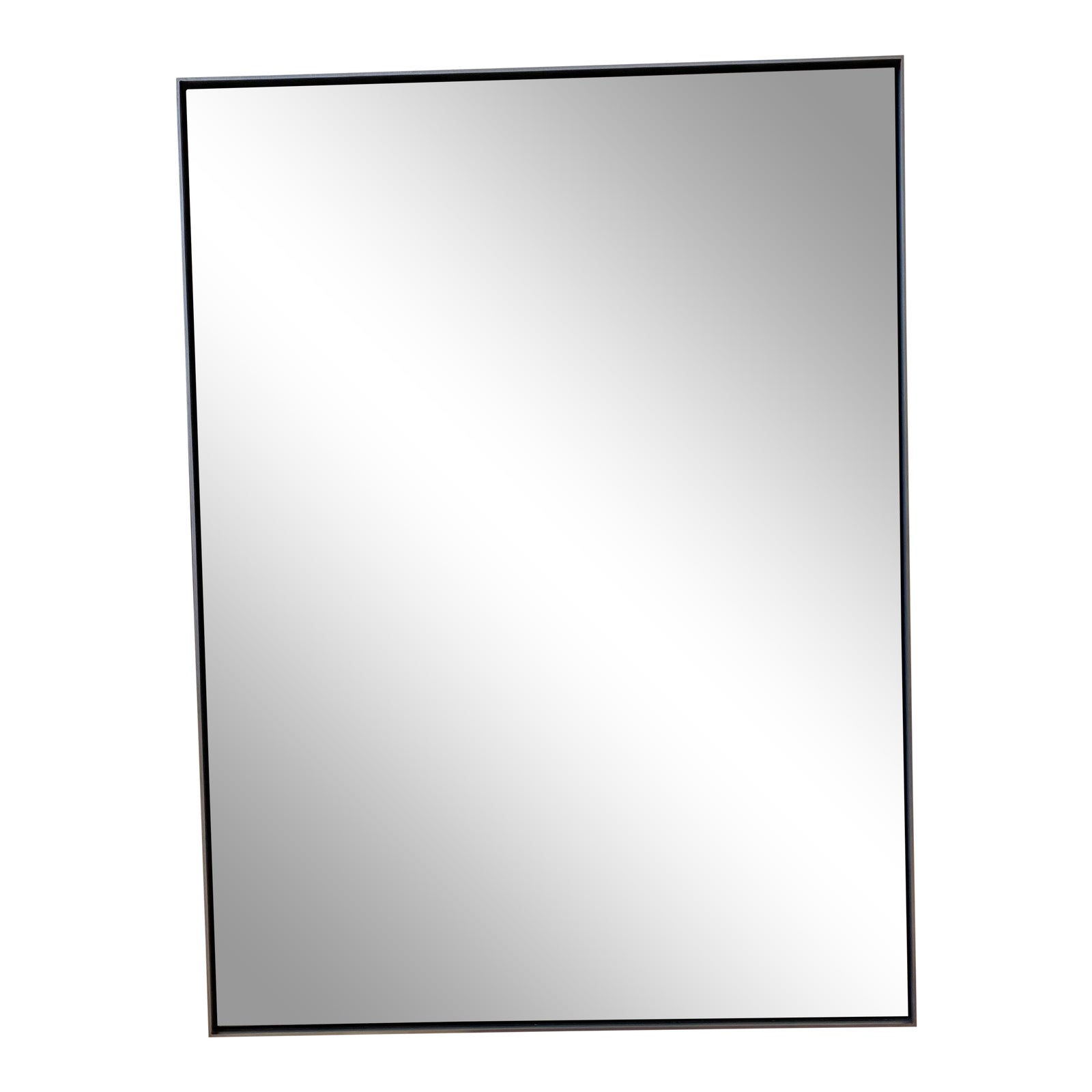 Design Plus Gallery presents a Metal Floating Mirror by Restoration Hardware. A sleek metal frame has a clean finish and minimalist detail for a modern, live-anywhere sensibility. Crafted of metal and wood with a mirror inset within a narrow metal frame. Metal cleat hanging hardware included. Can hang vertically or horizontally. Repeated exposure to steam and humidity may corrode the mirror’s unframed edges. To maintain the surface of the mirror, ensure adequate room ventilation and avoid prolonged exposure to moisture. Minor wear on frame.