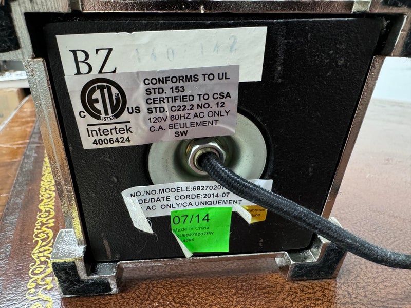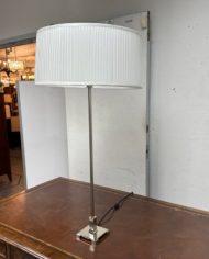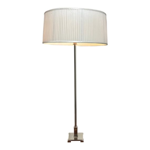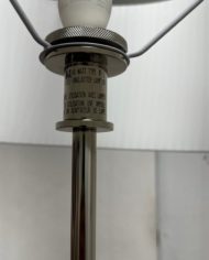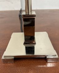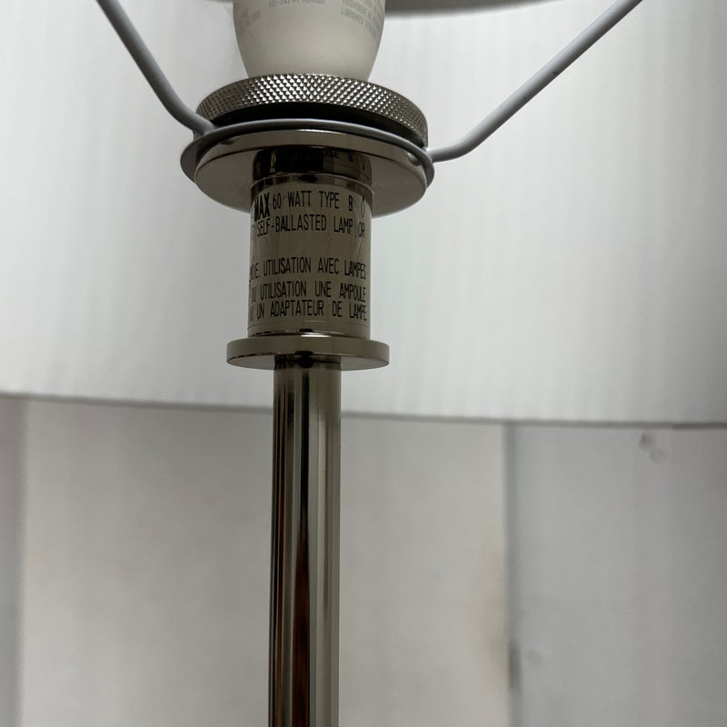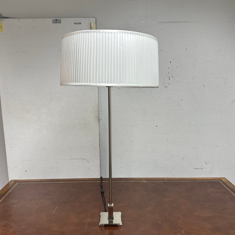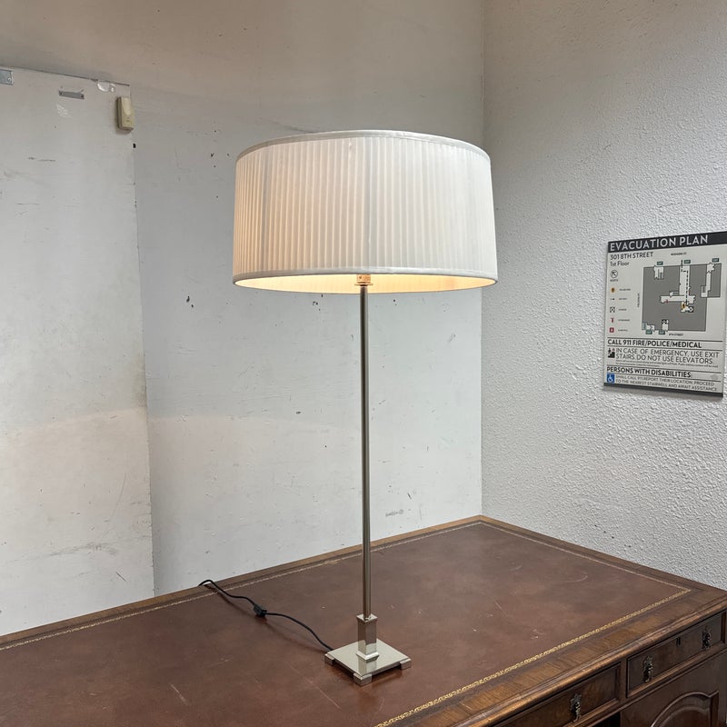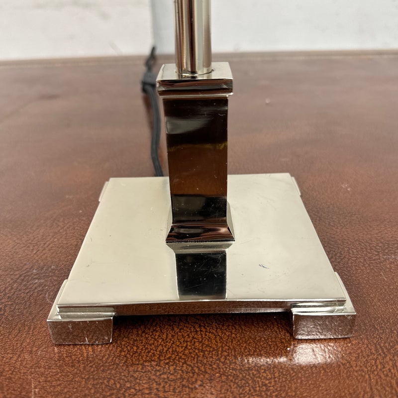 Design Plus Gallery presents a Metal Table Lamp by Restoration Hardware. Silver finish metal with a small square base. In good condition, visible and minor wear from usage + age.