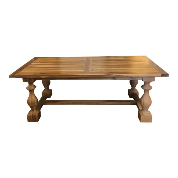 Design Plus Gallery presents a 17th Century Monastery Dining Table. A reproduction of a Balustrade table that were once used during medieval times. A hand-hewn style with a trestle design. The finish is Grey Acacia.