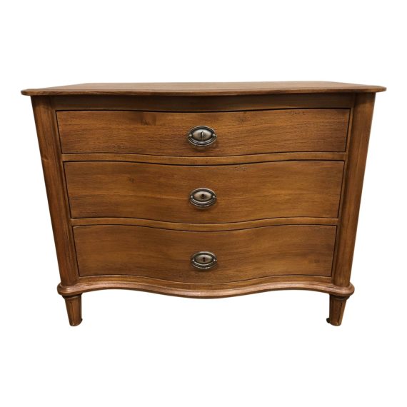 Design Plus Gallery presents the Empire Rosette Nightstand from Restoration Hardware. Hand-built of kiln-dried solid hardwood using mortise and tenon joinery and English dovetail drawers. The Antiqued Walnut distressed finish highlights the bowed front cabinet. Fittings are antique nickel drop pulls.