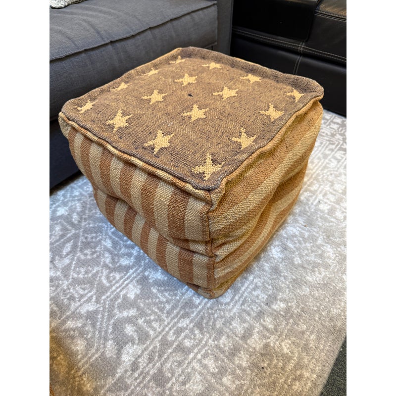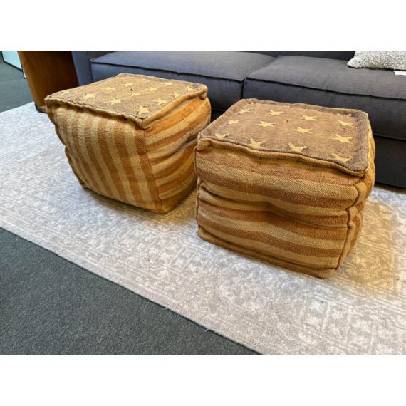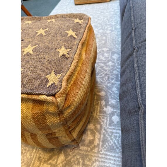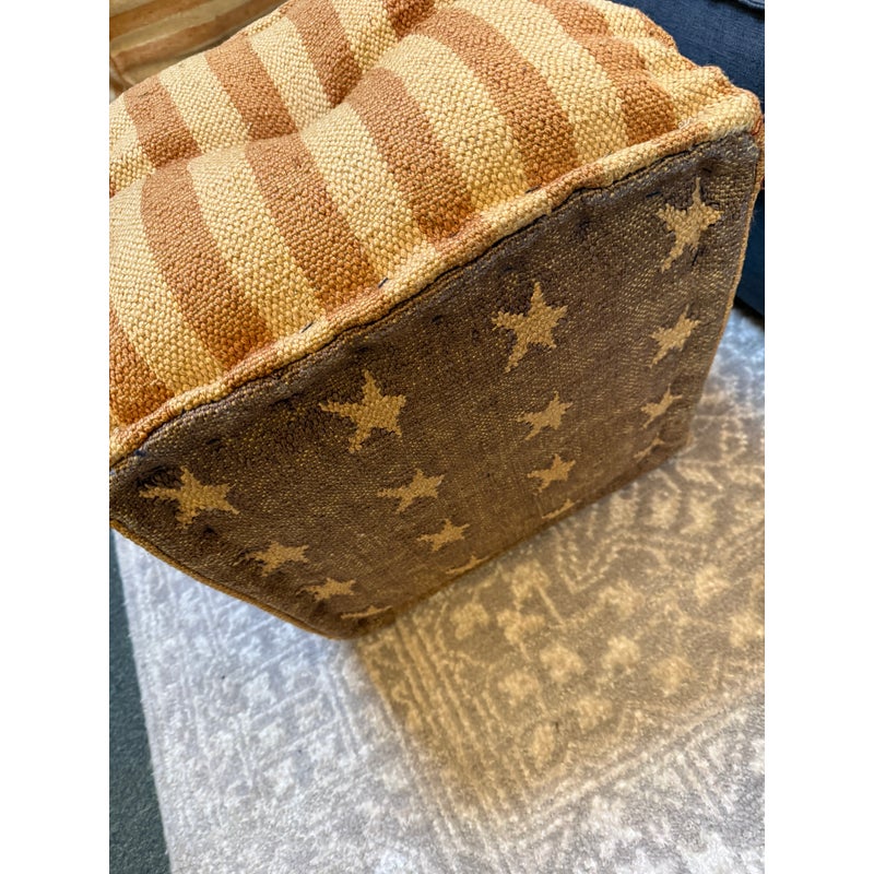 Design Plus Gallery presents an American Flag Canvas Poufs from Restoration Hardware Teen. The distressed canvas and American Flag pattern will add a great patriotic look for any special time of year. This item is in good condition, visible and minimal surface wear that’s consistent with use.