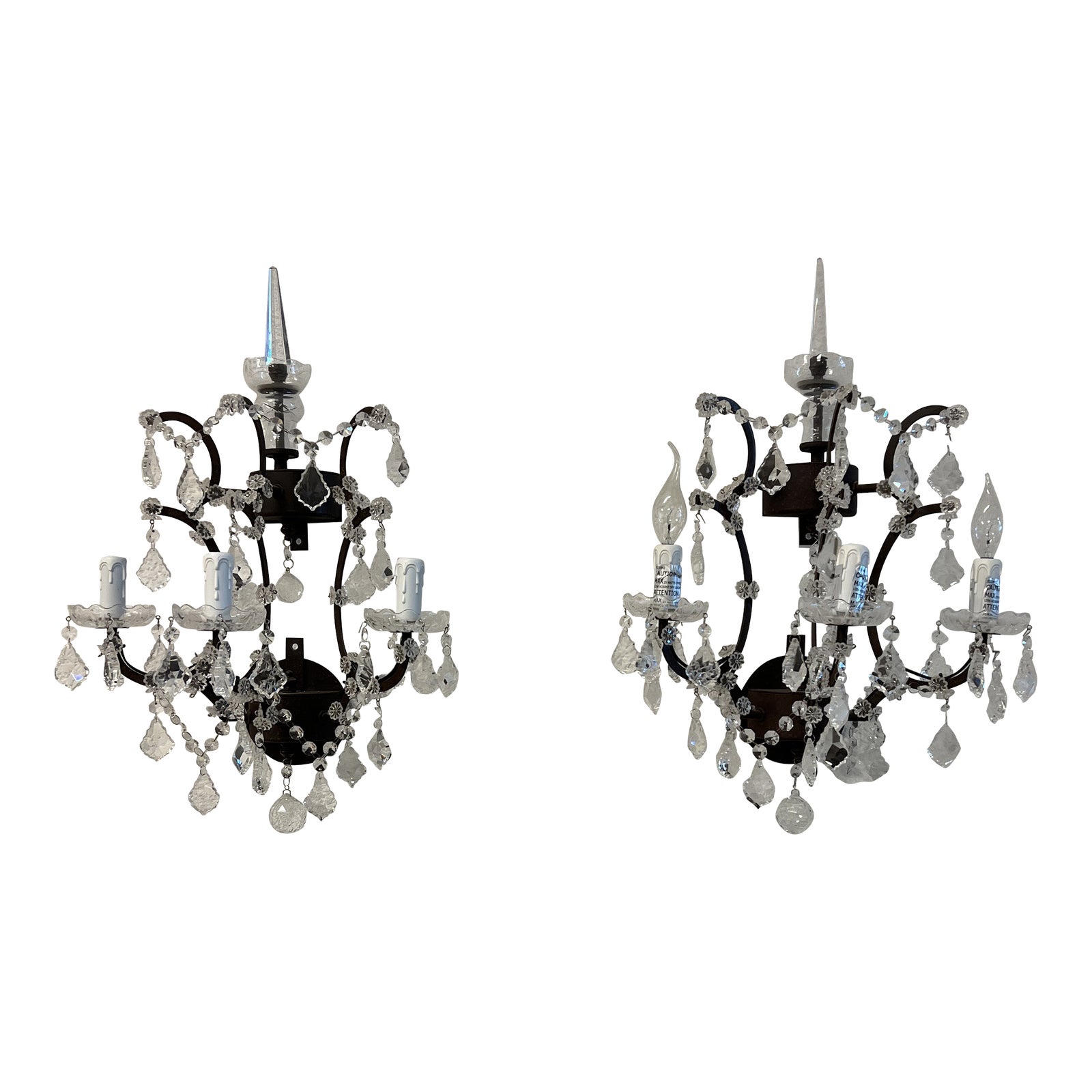 Restoration Hardware Timothy Oulton Three Light Crystal Wall Sconces, a Pair. Original Price: $1,490
