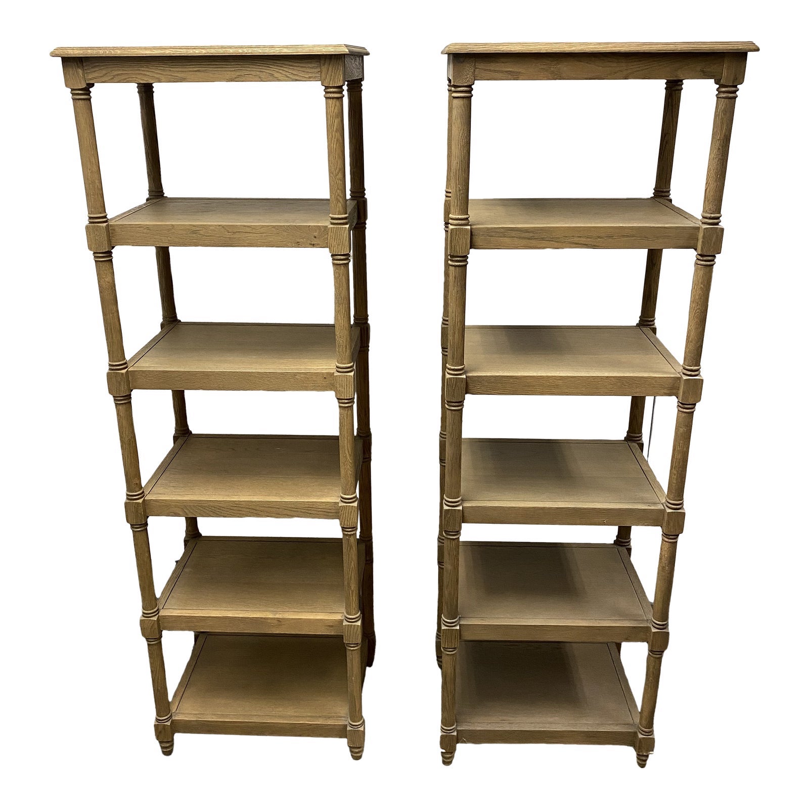 Restoration Hardware Weathered Oak Tall Etageres, a Pair. Original Price: $2,600