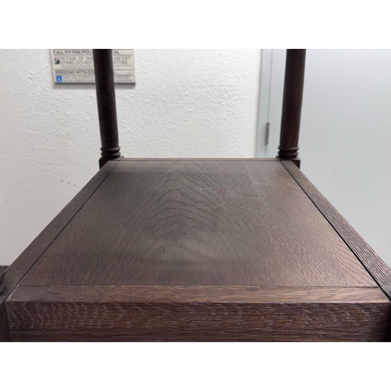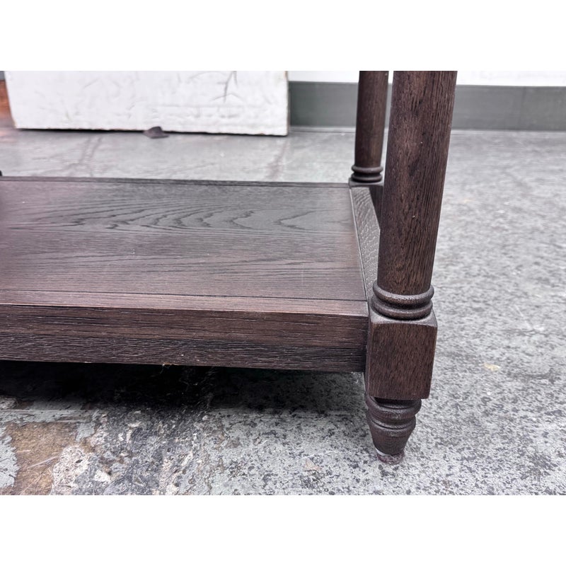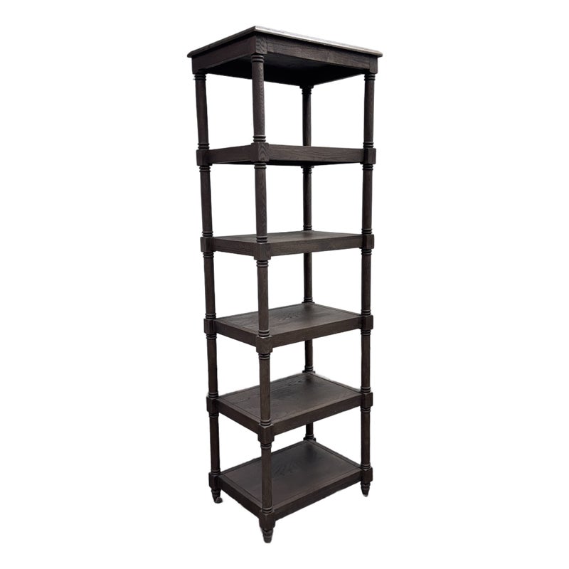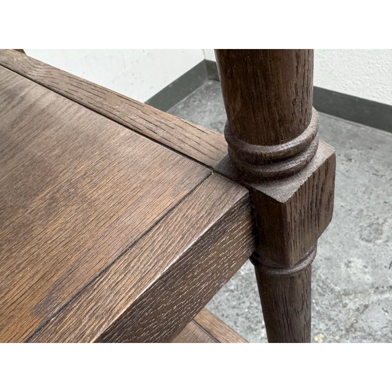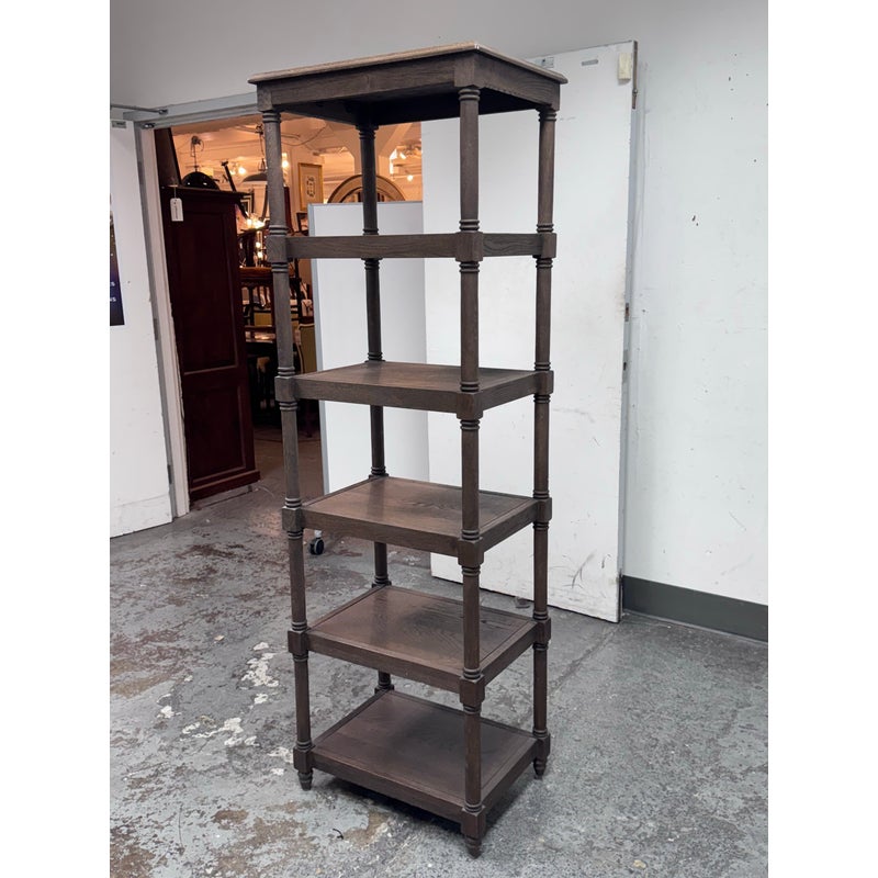Design Plus Gallery presents the Weathered Solid Oak Wood Open Shelf from Restoration Hardware. Rustic yet refined, our solid oak étagère features open shelving that offers streamlined storage in the bath. This is a discontinued style and is in good condition with visible + minimal from usage.