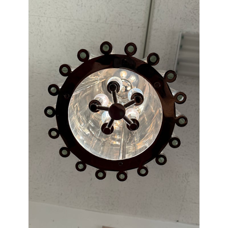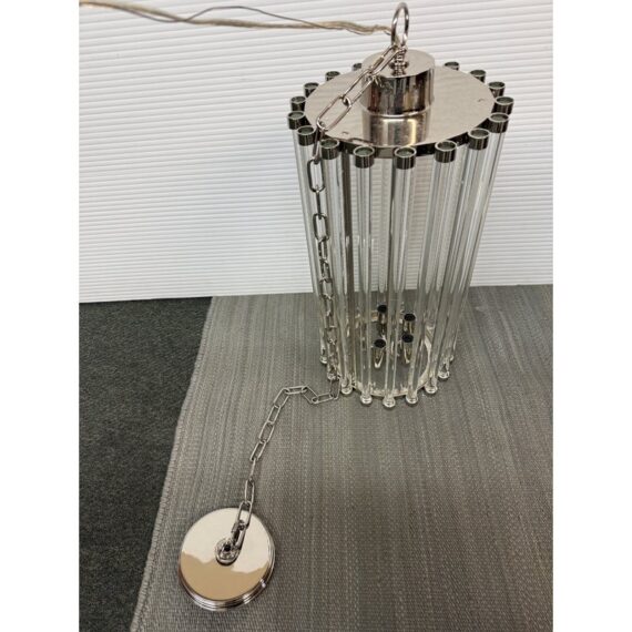 Design Plus Gallery presents a NEW Cole Pendant from Robert Abbey. A 5-Light Pendant brings modern elegance to any space. Its sleek lines and graceful curves are accented by a shimmering polished nickel finish, while a ring of glass rods encircles the bulbs to diffuse light with a soft, inviting glow. Sophisticated yet effortless, Cole makes a striking focal point over a dining table, in a living room, or anywhere you want elevated ambient illumination. In good condition, visible and minimal wear from usage.