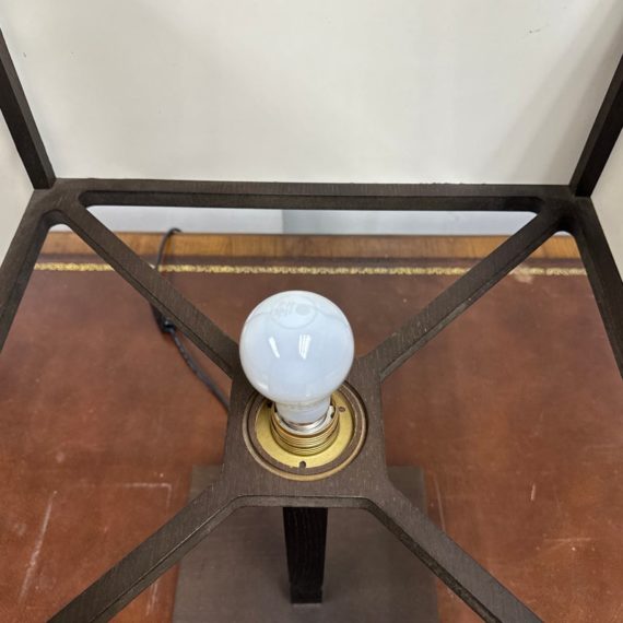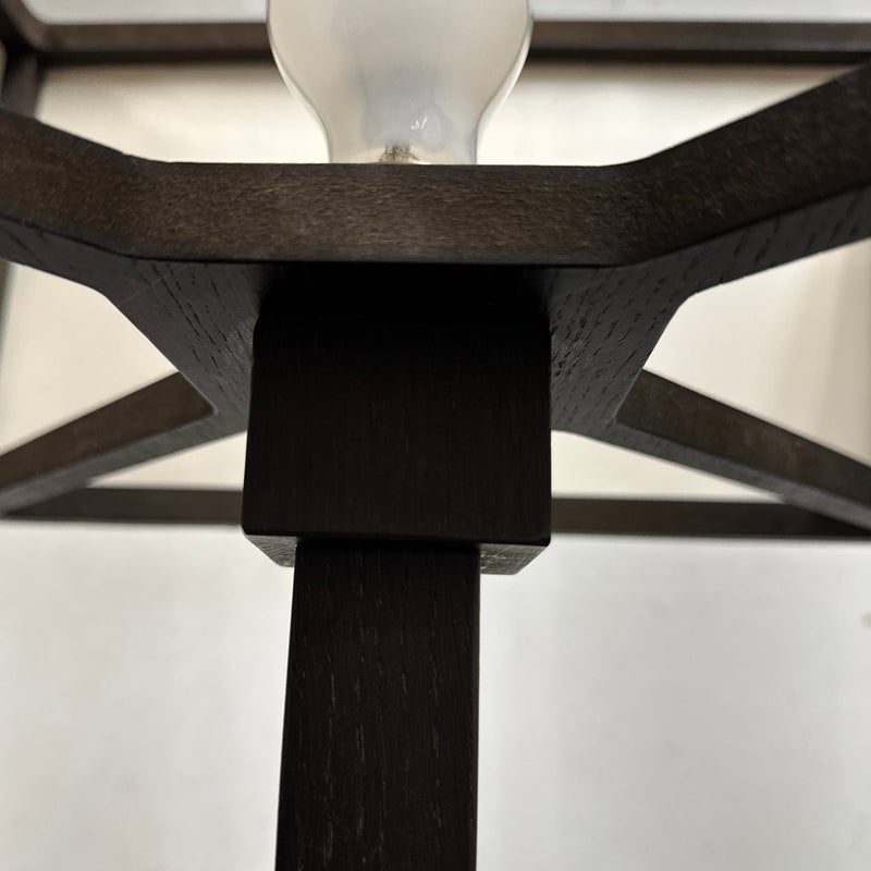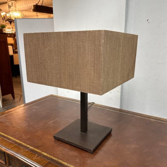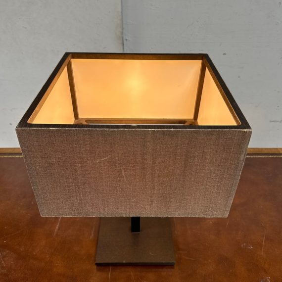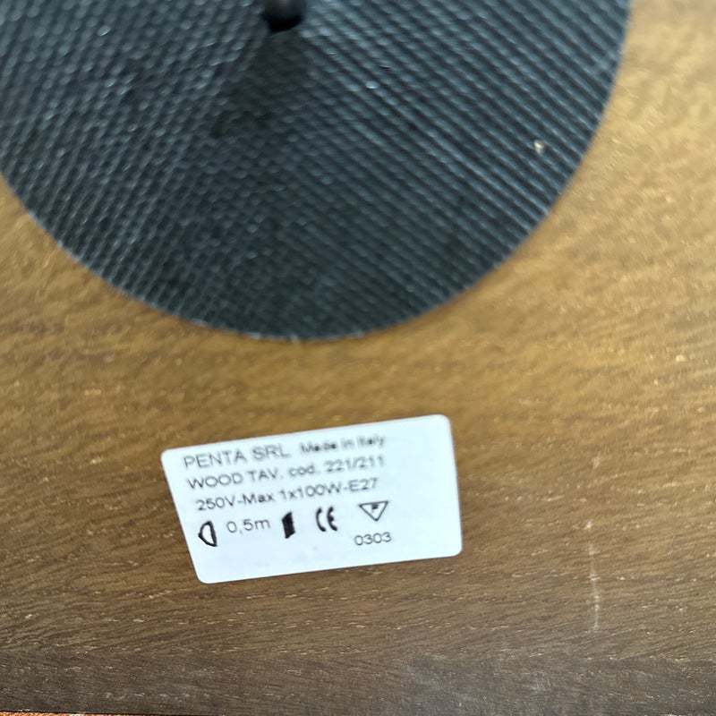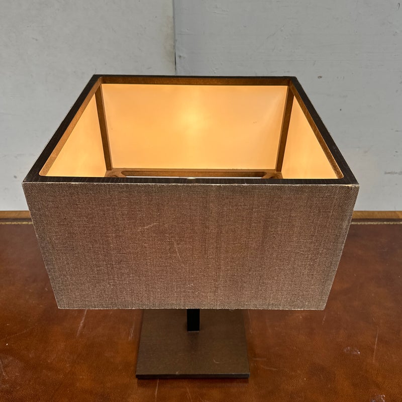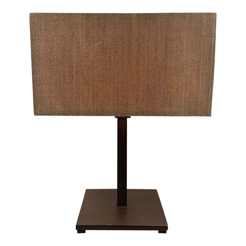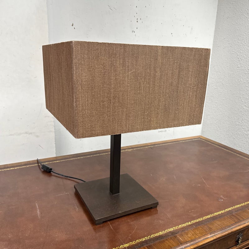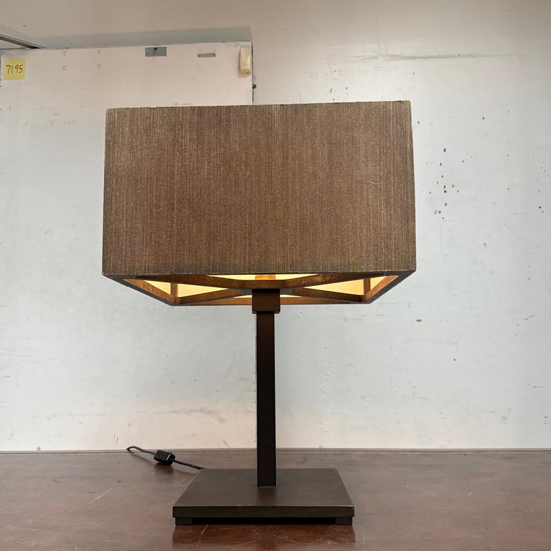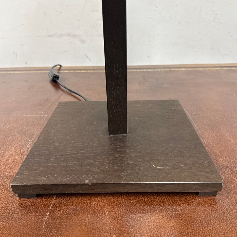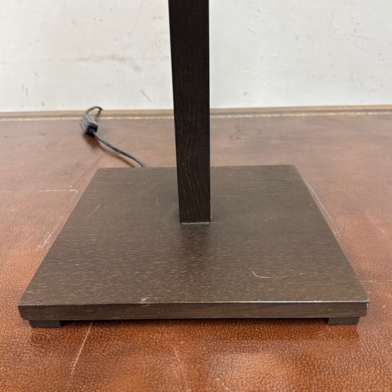 Design Plus Gallery presents a Table Lamp by Roche Bobois. A thin wood shade with a pedestal base. In good condition, visible and minor wear from usage + age. This is a discontinued model. Made in Italy.
