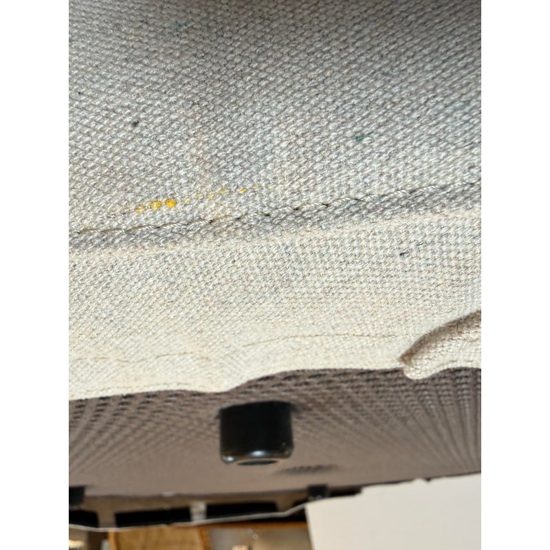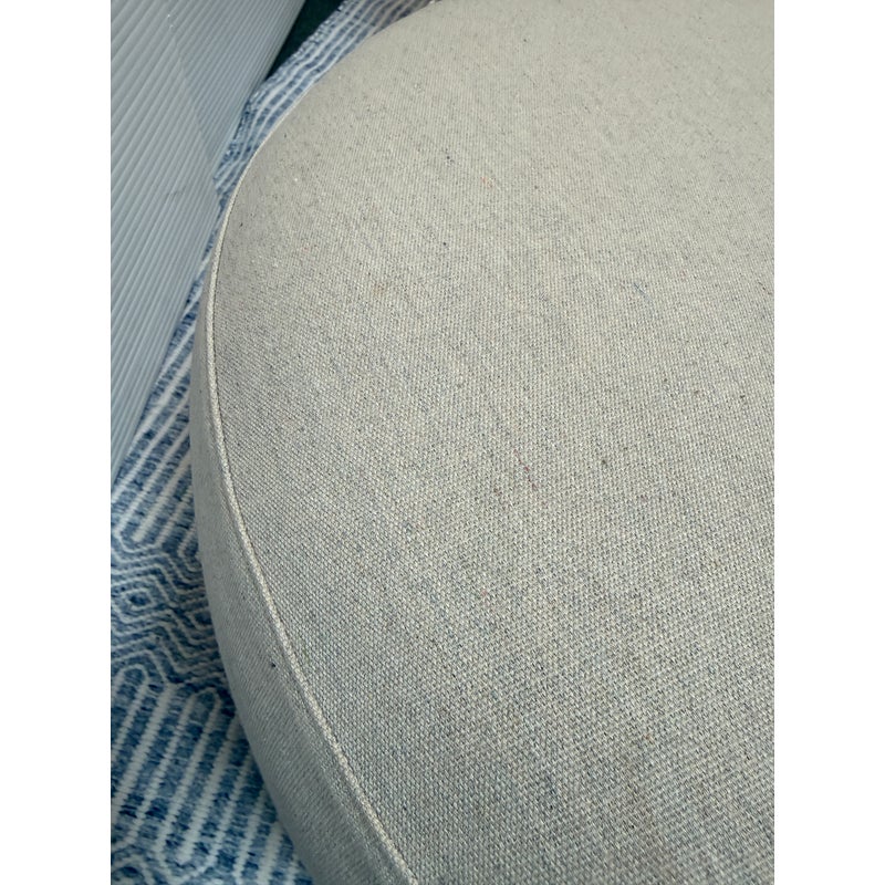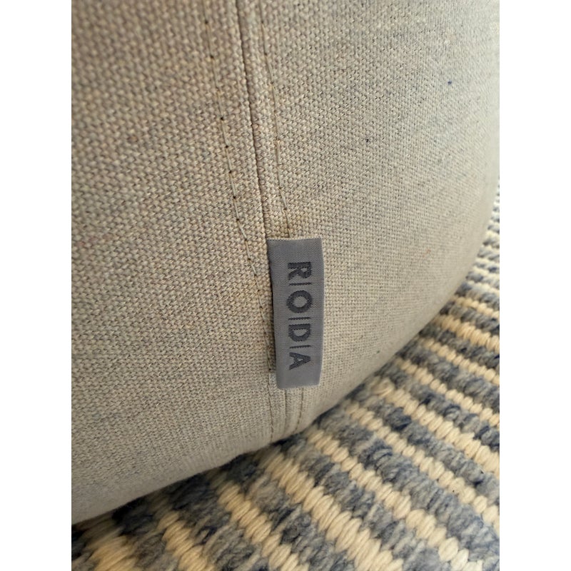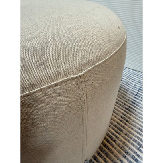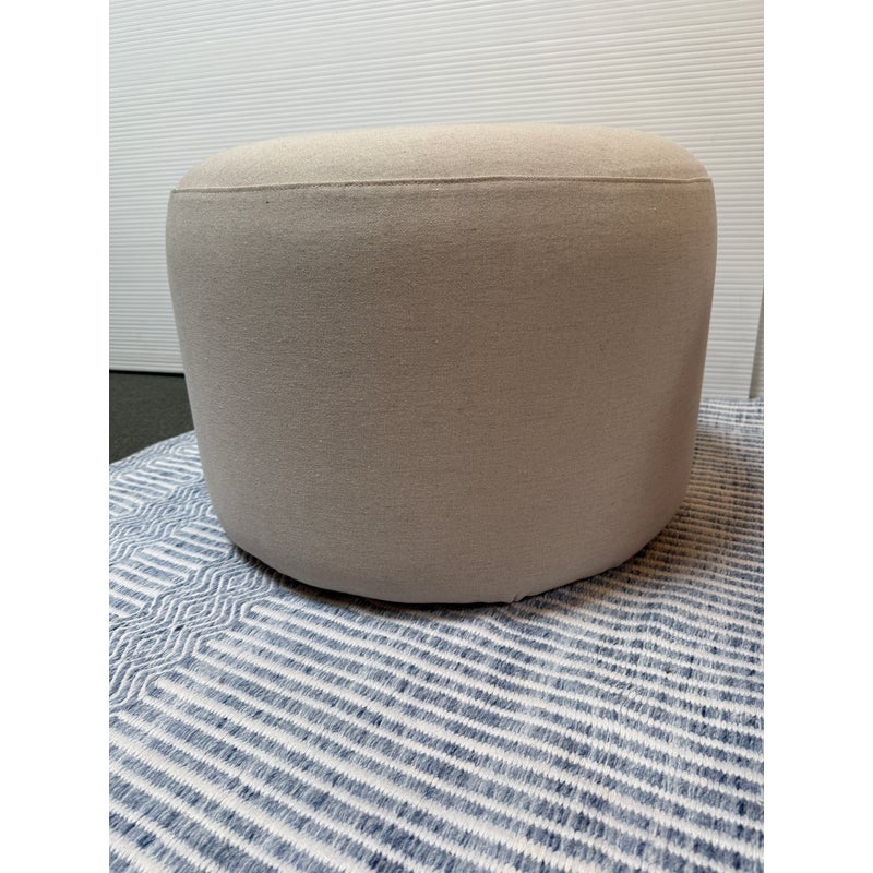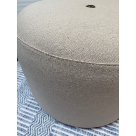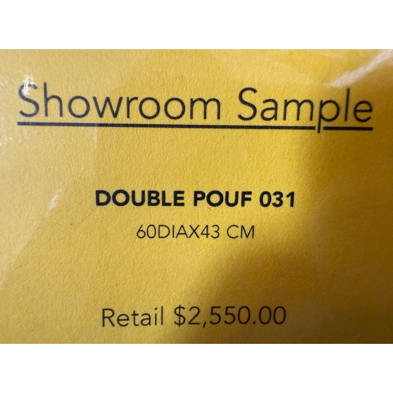 Design Plus Gallery presents a Pouf from the Roda Double Collection. Deigned by Rodolfo Dordini. Characterized by a “total outdoor” multi-layer drainable padding and 3D mesh like upholstery, the ottoman offers welcoming softness indoors or out. A powder coated aluminum framed round ottoman is lightly tufted with metal rivet. Was a Showroom Sample, in good condition, minimal wear. Made in Italy.