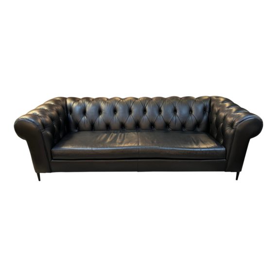 Roger & Chris Eliza Custom Matte Black Modern Chesterfield Sofa. Original Price: $5,400