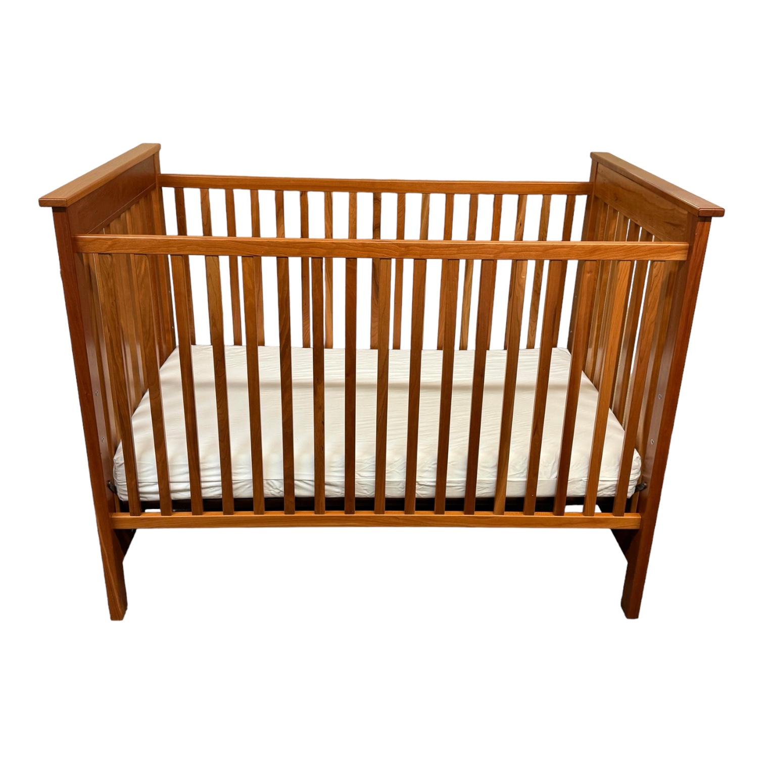 Design Plus Gallery presents the Nest Crib+Toddler Bed by Room & Board. A contemporary reference to the Arts & Crafters sale,the Next crib features solid wood construction and a non-toxic lacquer. A wonderful option to keep your baby in the same bed from infancy through their toddler years, converting from crib to protective bed. Exceeds all US government safety standards. Made in the USA. Minor wear from use; bed is in good condition. Orig. Price $899