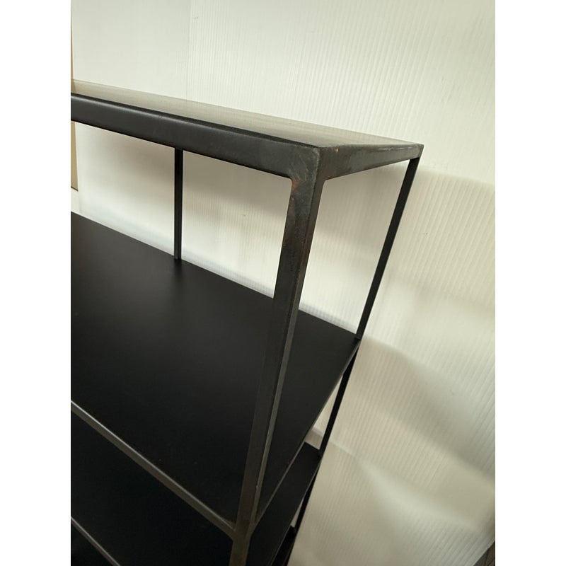 Design Plus Gallery presents the Foshay Shelving Unit from Room & Board. This shelving unit is a versatile and modern storage piece that is characterized by a minimal steel frame with architectural appeal. It is artisan-crafted in Minnesota and given a black coat over its high-quality steel frame. It is in good condition with minimal wear for its usage.
