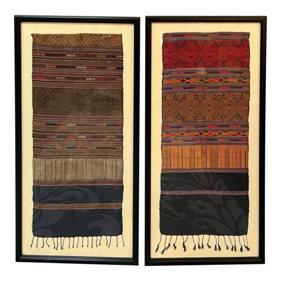 Room & Board Framed Vintage Thai Textile Fragments, a Pair. Original Price: $999