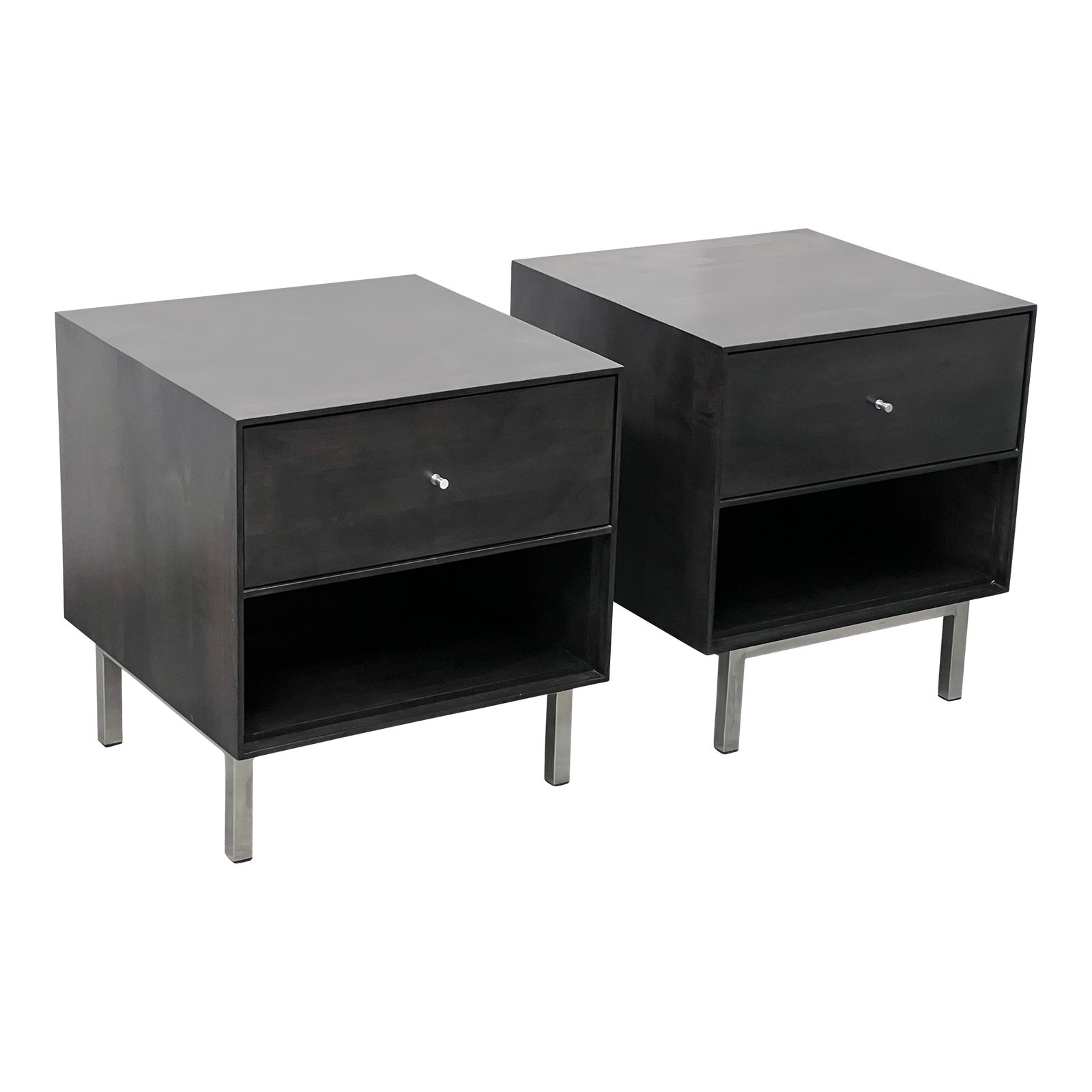Design Plus Gallery presents a Pair of Hudson Nightstands from Room & Board. The Hudson nightstands in a charcoal finish are a sleek and modern addition to any bedroom. These nightstands feature a clean and minimalist design, with a rectangular shape and straight lines.