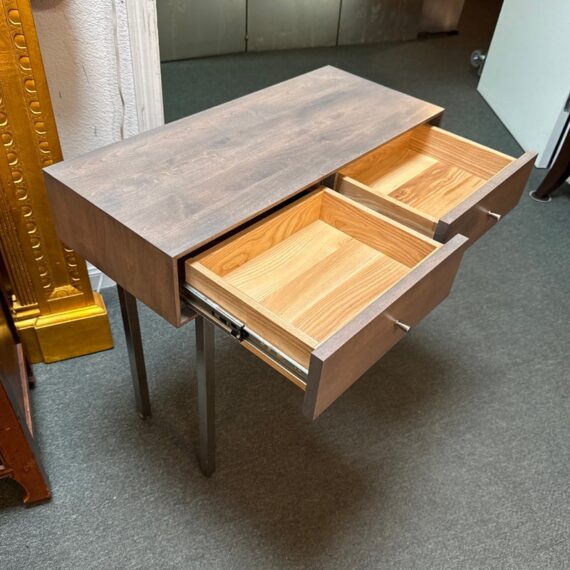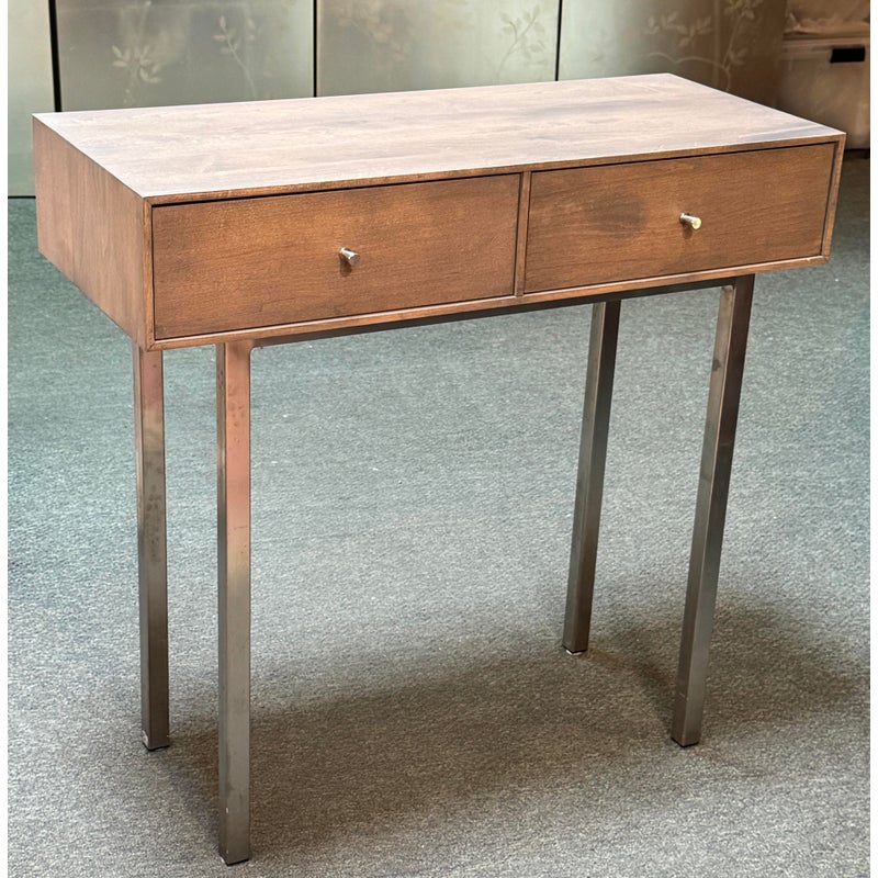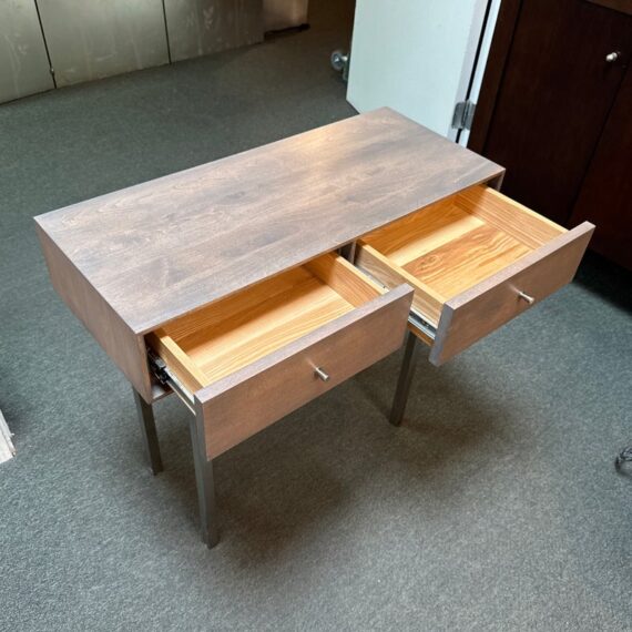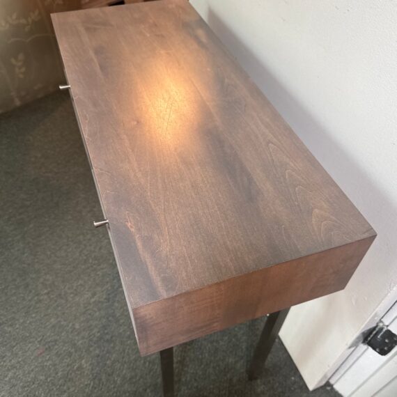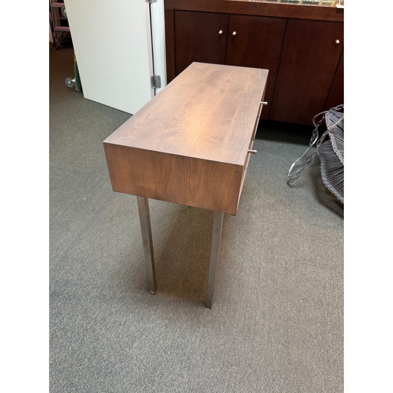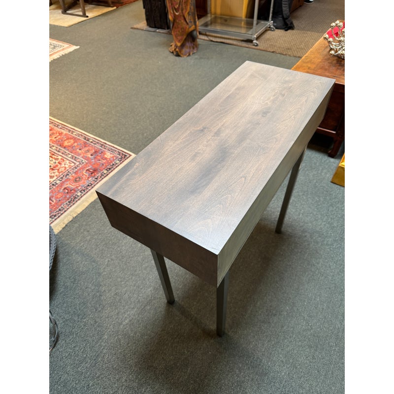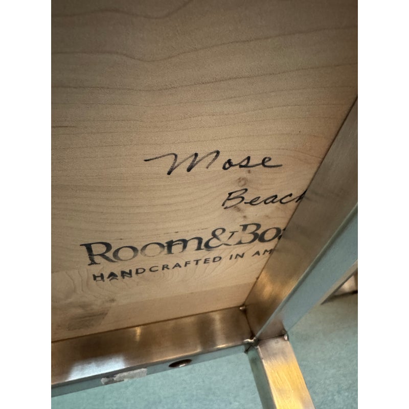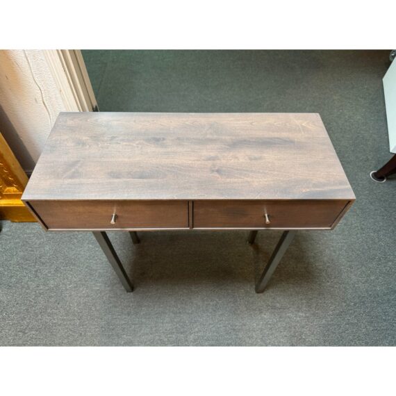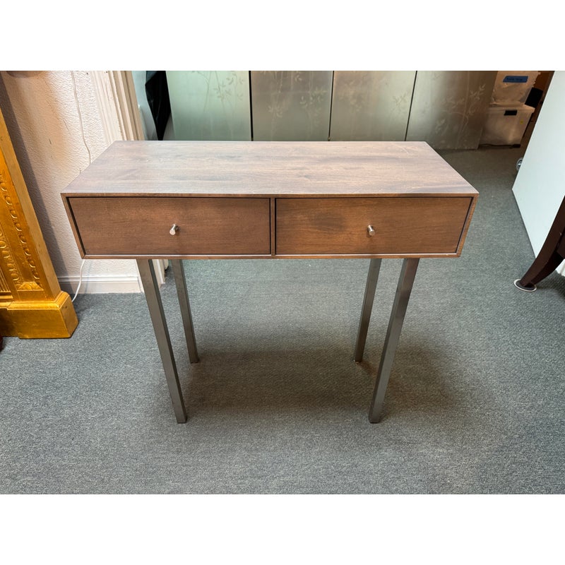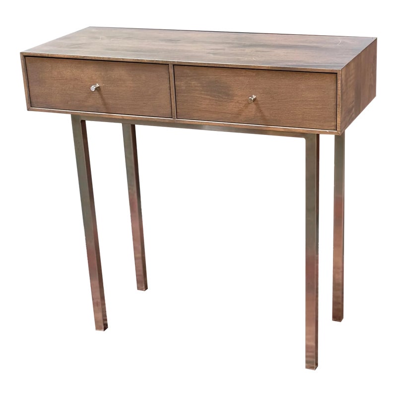 Design Plus Gallery presents a Hudson Console by Room & Board. A modern console table is handcrafted in West Virginia by skilled artisans. The natural grain of sustainably sourced U.S. solid wood is the perfect backdrop for the sleek, timeless design. Features two drawers, and constructed with maple in a shell stain. The base and pulls hardware are stainless steel. Minor wear from usage. Made in West Virginia, USA.