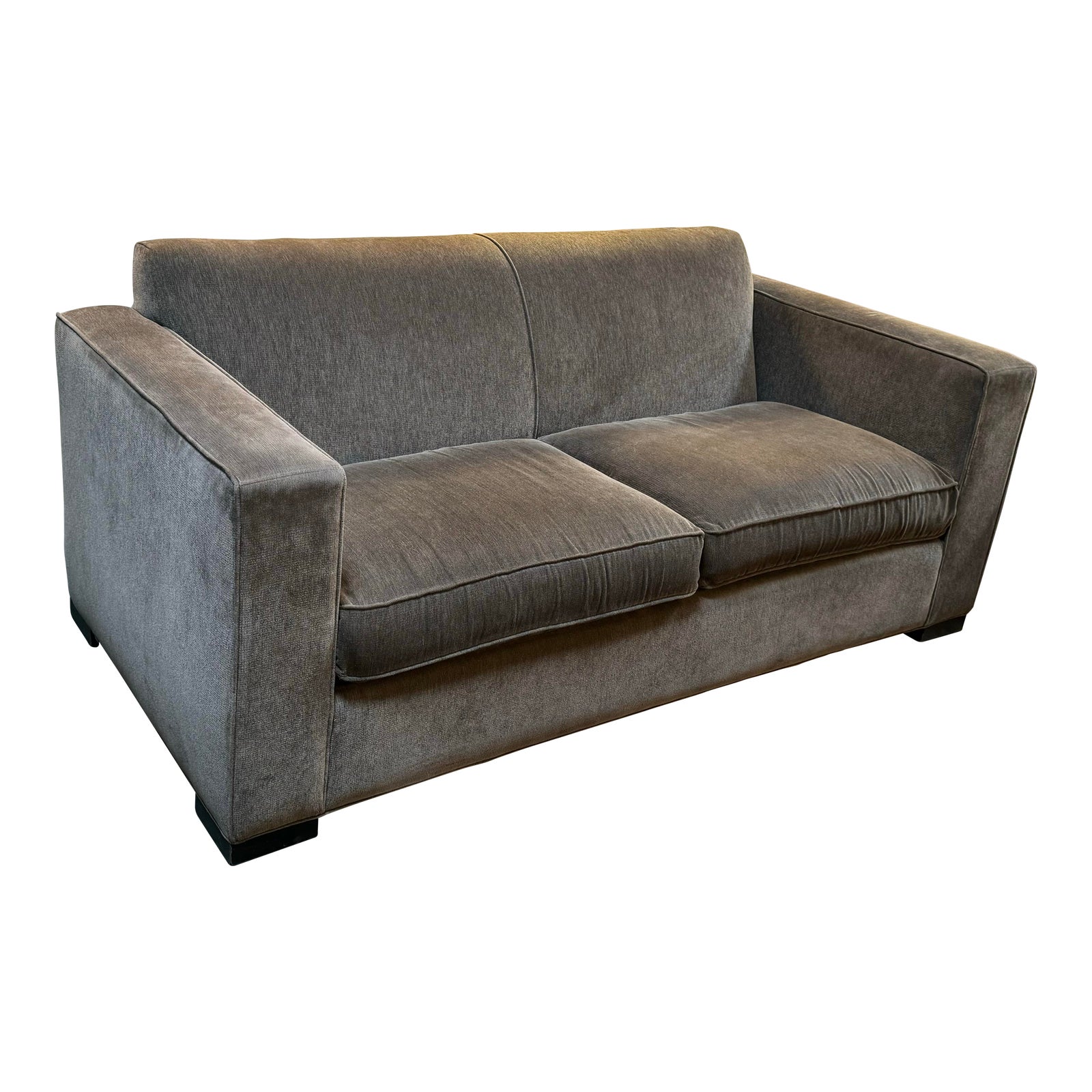 Design Plus Gallery presents an Ian Loveseat in by Room & Board. Manufactured by McCreary Modern for Room & Board in North Carolina. The design is clean and modern while being comfortable and family friendly. Tailored details like welting and a high fixed back give this sofa a supportive positioning for hours of stylish relaxation. Wide arms and plush seat cushions encourages serious lounging time as well. The fabric color is charcoal. In good condition, with visible and minimal wear from usage. Made in USA.