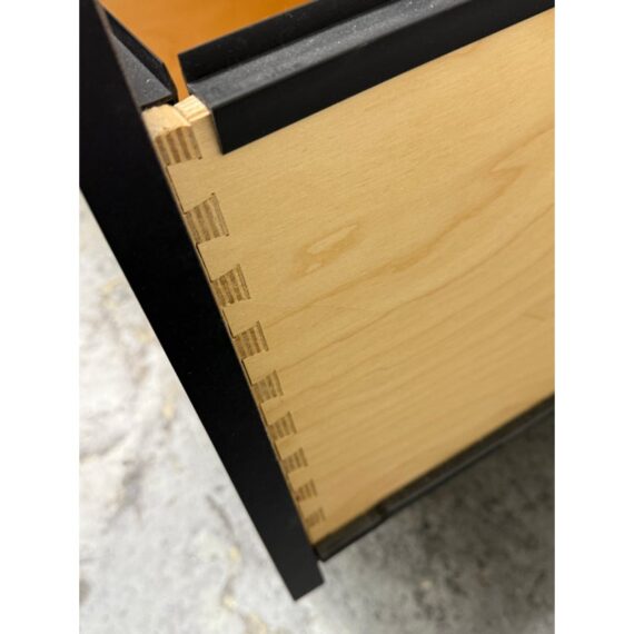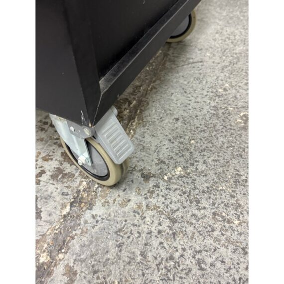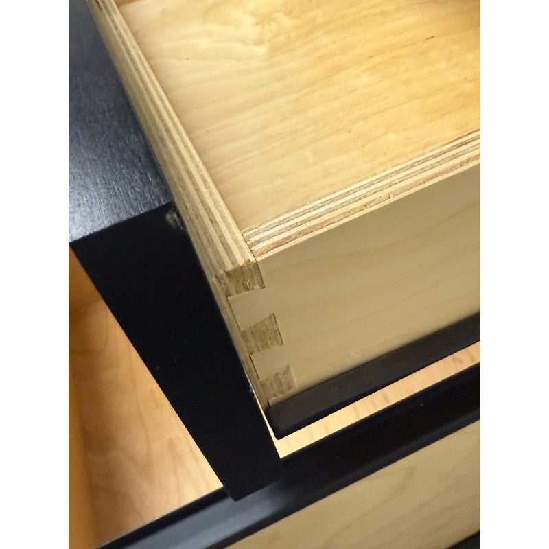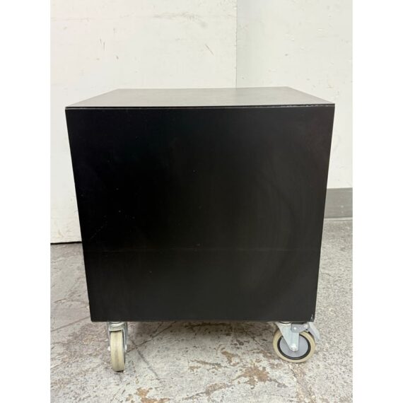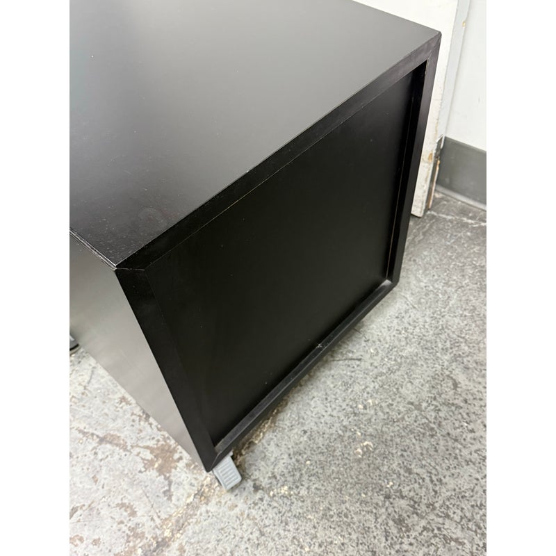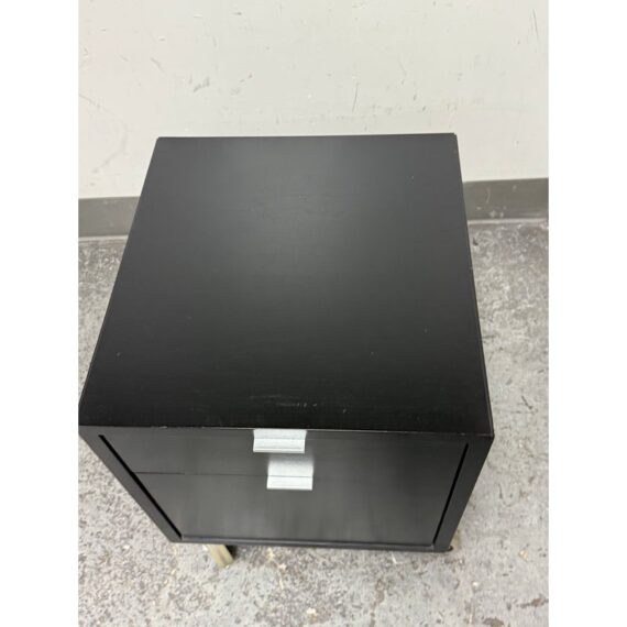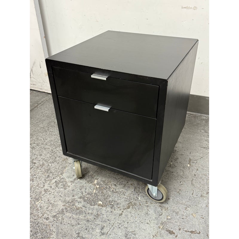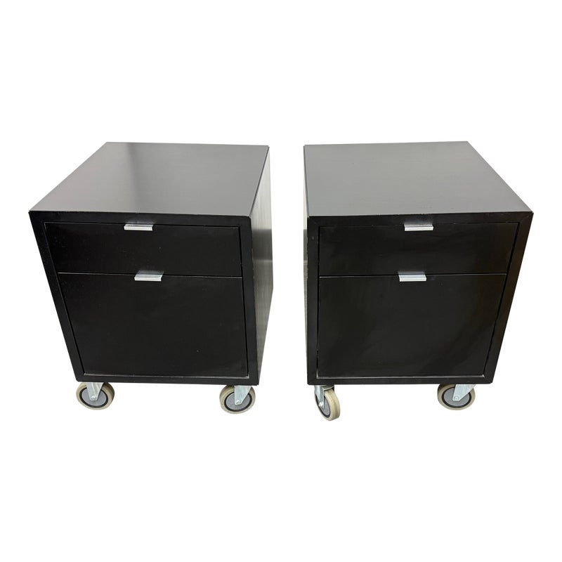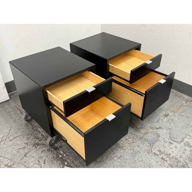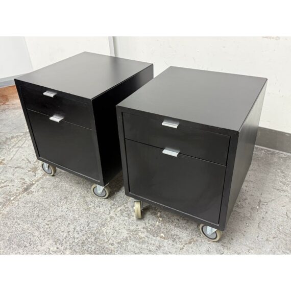 Design Plus Gallery presents a Pair of Linear Collection File Cabinets from Room & Board. Update your office with these easy to maneuver and slick tables that will be at your beck and call when needed. They have a slick polished look & feel with their high shining black surfaces with metal hardware. They both have minor surface wear for their usage but overall in good condition. Made in USA.