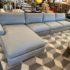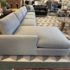 Design Plus Gallery presents a Light Gray Sofa with Connected Slipper Chair + Chaise Lounger from Room & Board. Fabric is known as the Dawson and offers the exceptional performance with the durability of a micro-fiber minus the suede-like texture. A small zig-zag pattern gives visual interest to this soft, stain-resistant fabric. The sofa has three back and seat cushions with the chaise having a long cushion with back cushion and track arms. Is in good condition with minimal signs of noticeable wear and removable upholstery to the loose cushions make this an easy to clean addition to your home, office, or game room. Made in USA.