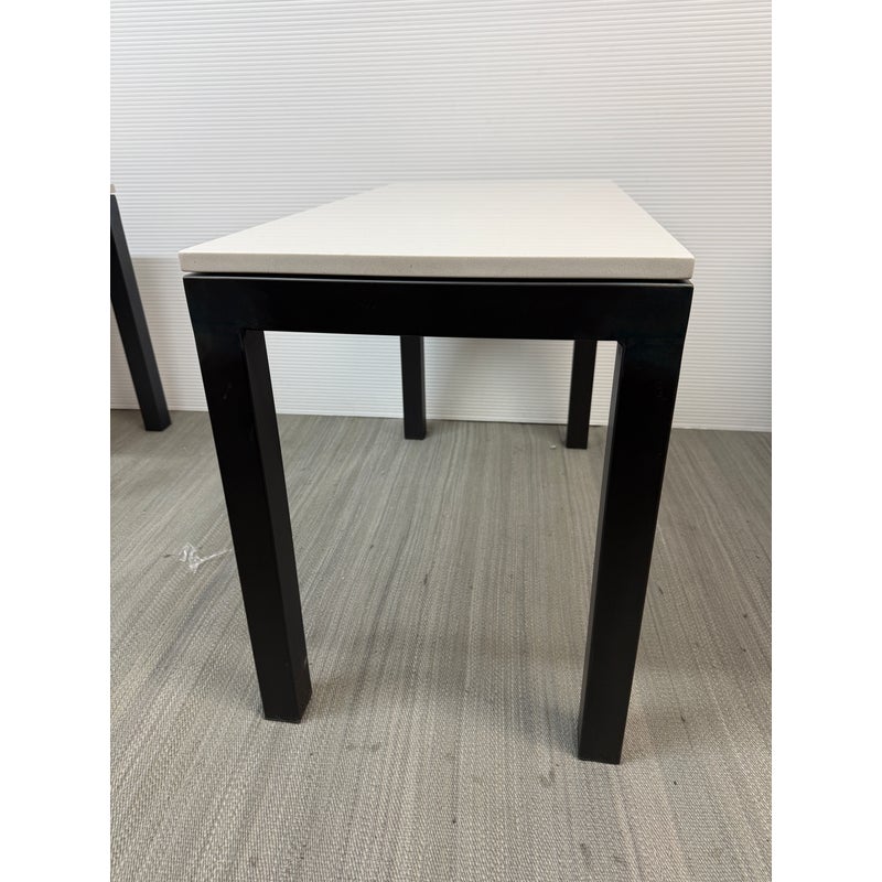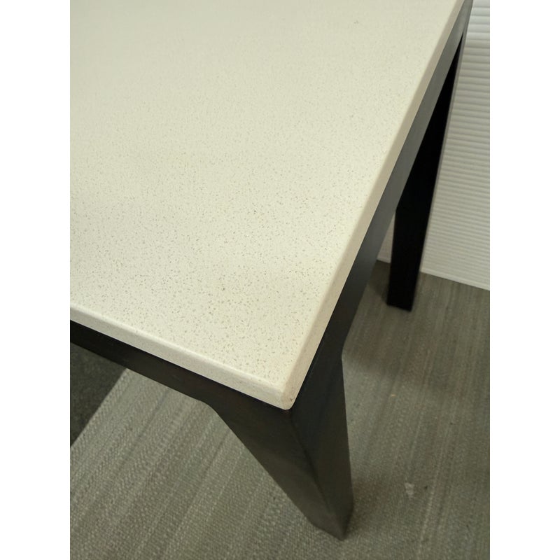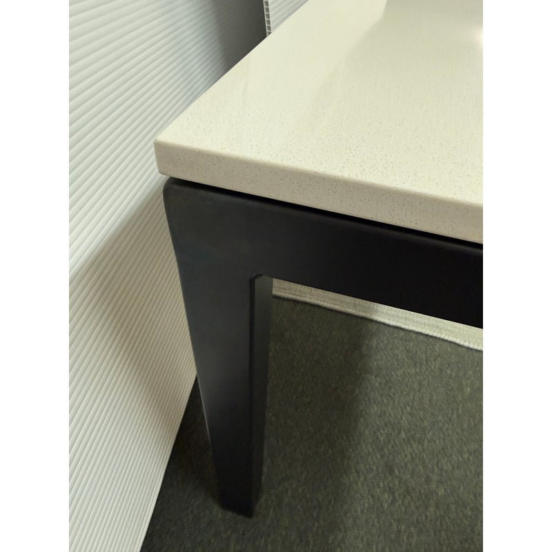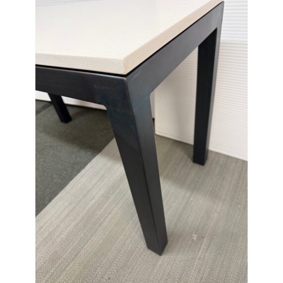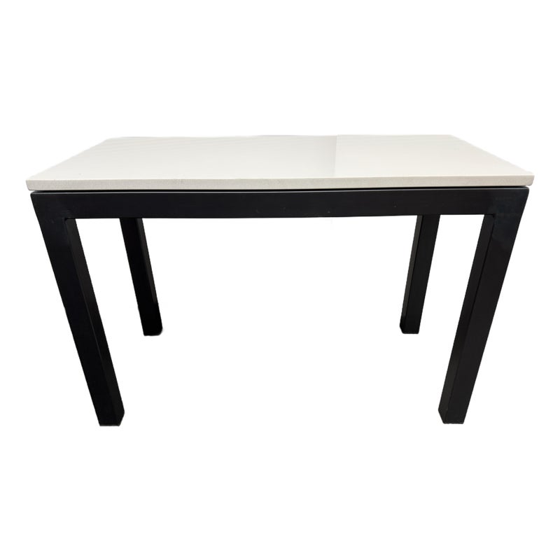 Design Plus Gallery presents a Custom Parsons Table by Room & Board. Designed to suit any space, this classic design is durable and timeless. Legs set at the edge of the table help maximize seating. The top is a quartz. Table in a good condition.