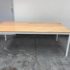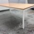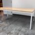Design Plus Gallery presents a Parsons Dining Table by Room & Board. The table top is a Maple Wood Surface. The hot-rolled tubular steel frame is powered coated in stark white with traditional Parsons-style to support the wood top while keeping clean simple lines. Corners are hand-welded for a raw, torched finish. Easily seating 6, the casual table is perfect for everyday dining or entertaining. In good condition, visible and minor wear. Made in USA.