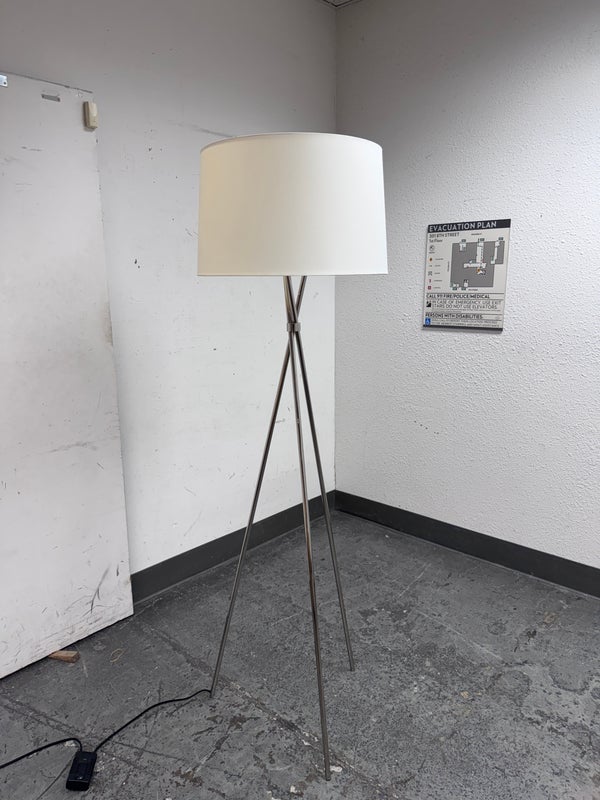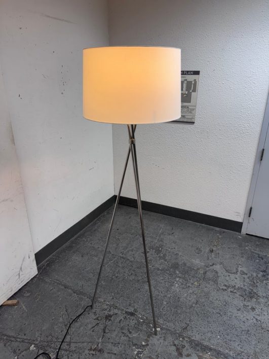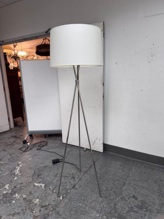 Design Plus Gallery presents a Floor Lamp from Room & Board. Add architectural interest that blends beautifully with any style. The Tri-plex floor lamp features a beautiful cotton shade and a fabric cord. Is in good condition with minimal wear for its age + use.