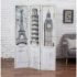 Design Plus Gallery presents a Room Divider. Perfect for the globe trotter or architecture lover, this room divider features famous European Landmarks. Take a journey from home to see the Eiffel Tower, Tower of Pisa, and the Big Ben! This single sided 3-panel screen divider can separate areas of a large room and provide privacy. Whitewashed wood frame keeps the setting airy.