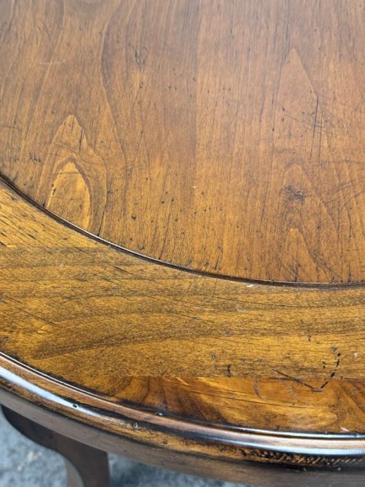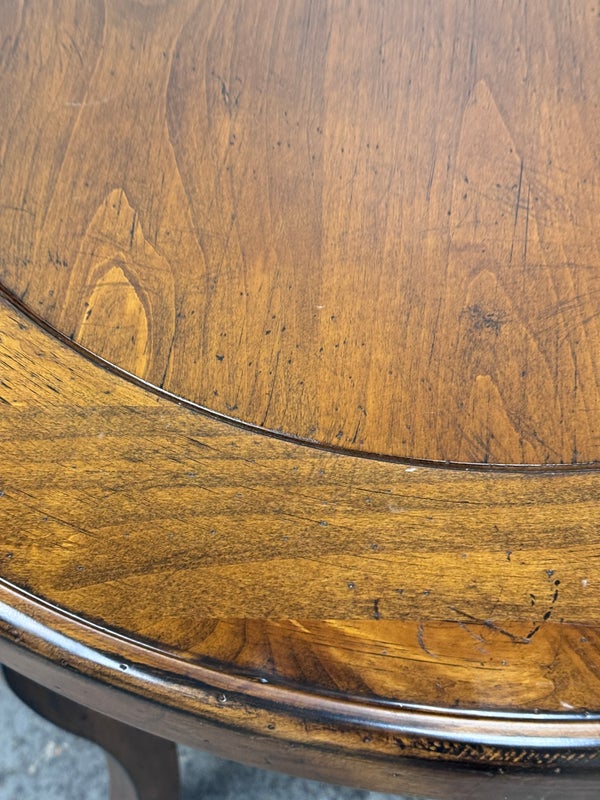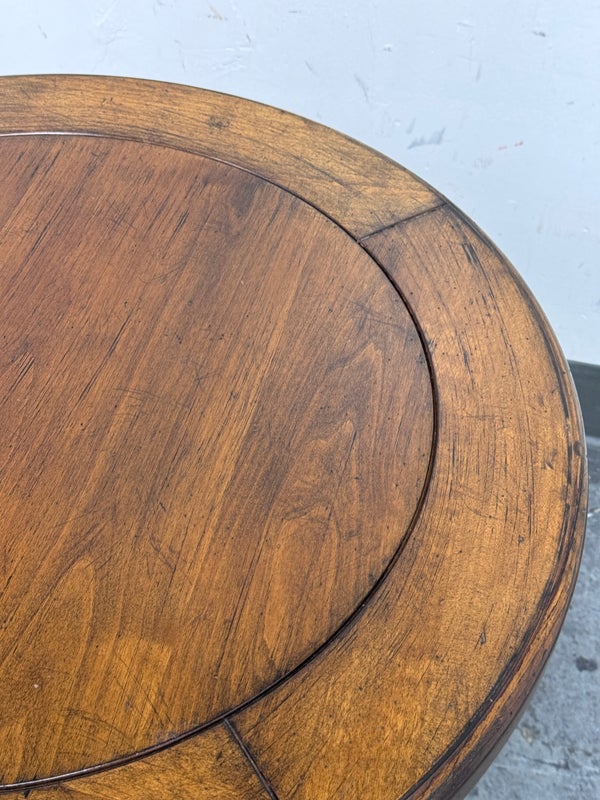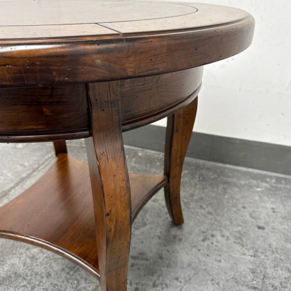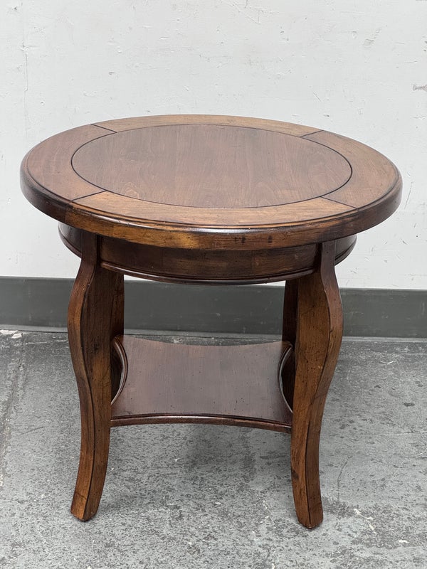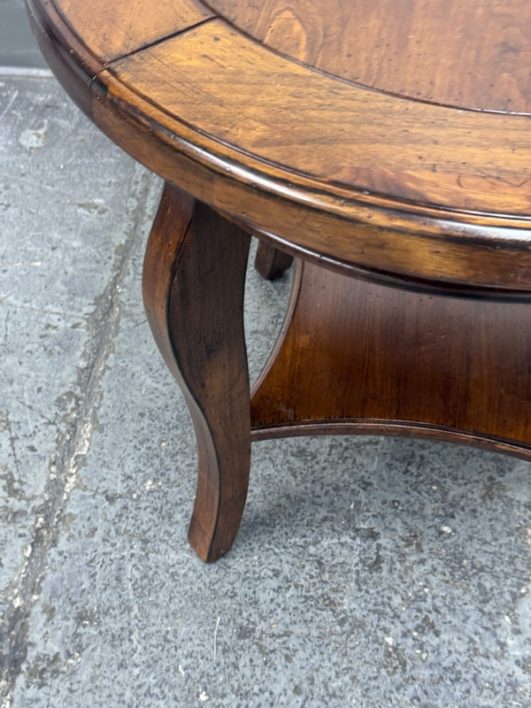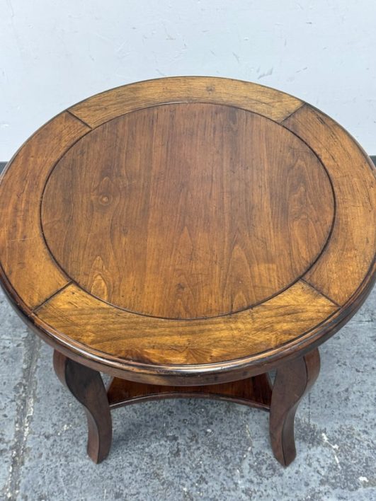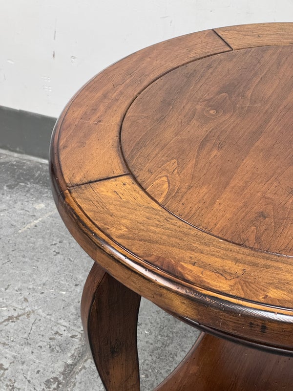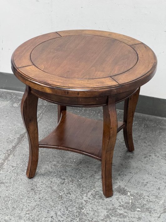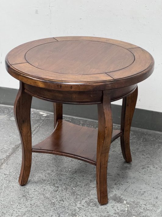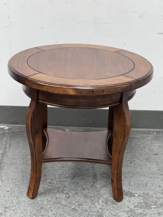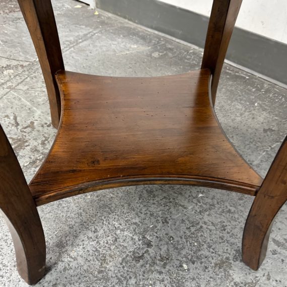 Design Plus Gallery presents a Side Table of Mahogany of Vintage Age. The table has a lower shelf that is connected by four French legs. Table is in good condition with minimal surface wear that is considered consistent with age + use.