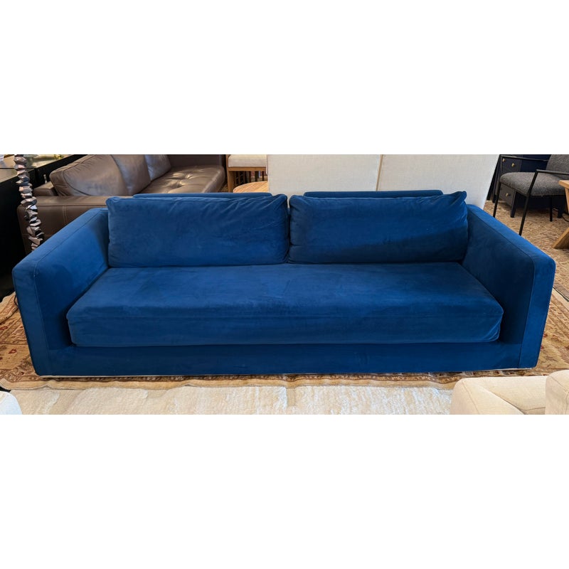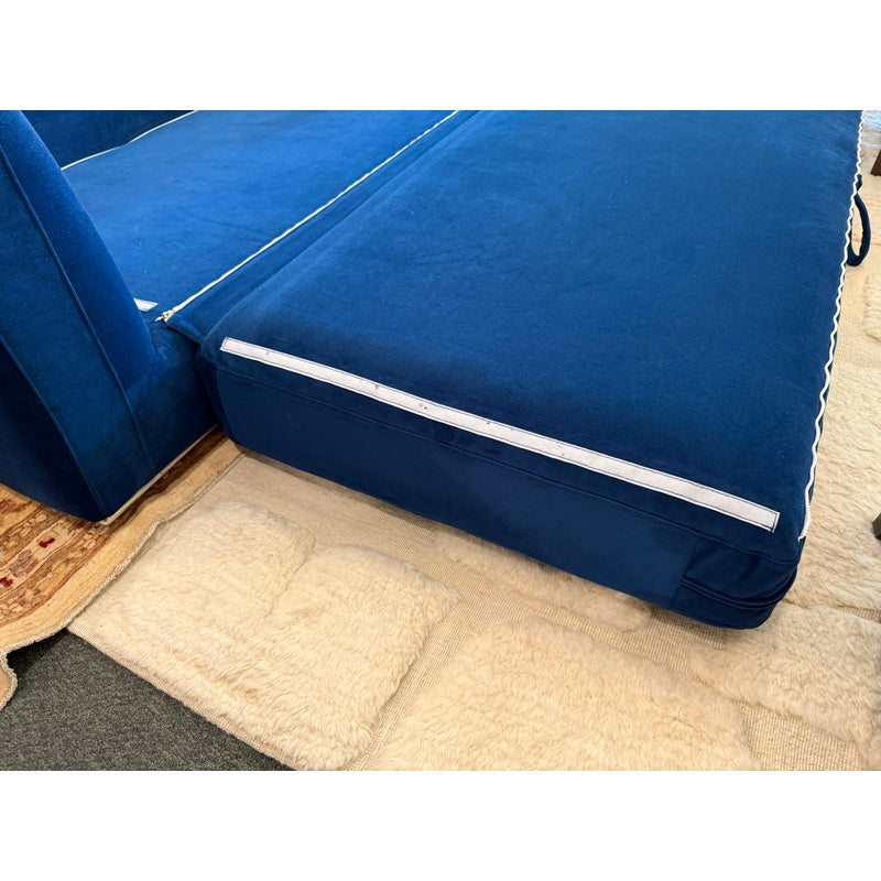 Design Plus Gallery presents the Milo Sleeper Sofa from Rove Concepts. The sleek and flat profile of the Milo Sleeper Sofa marries sophisticated style with casual comfort. Milo’s subtle curves of the padded armrest in Cobalt velvet delivers plush and stable support for its spacious seating. Milo features a modern design that can be easily converted into a spacious bed, perfect for when you have guests over. Much like the grandeur of Italian design, the Milo is formed with more width than the average sofa, providing an overall grander feel for your home. It is in good overall condition for its usage.