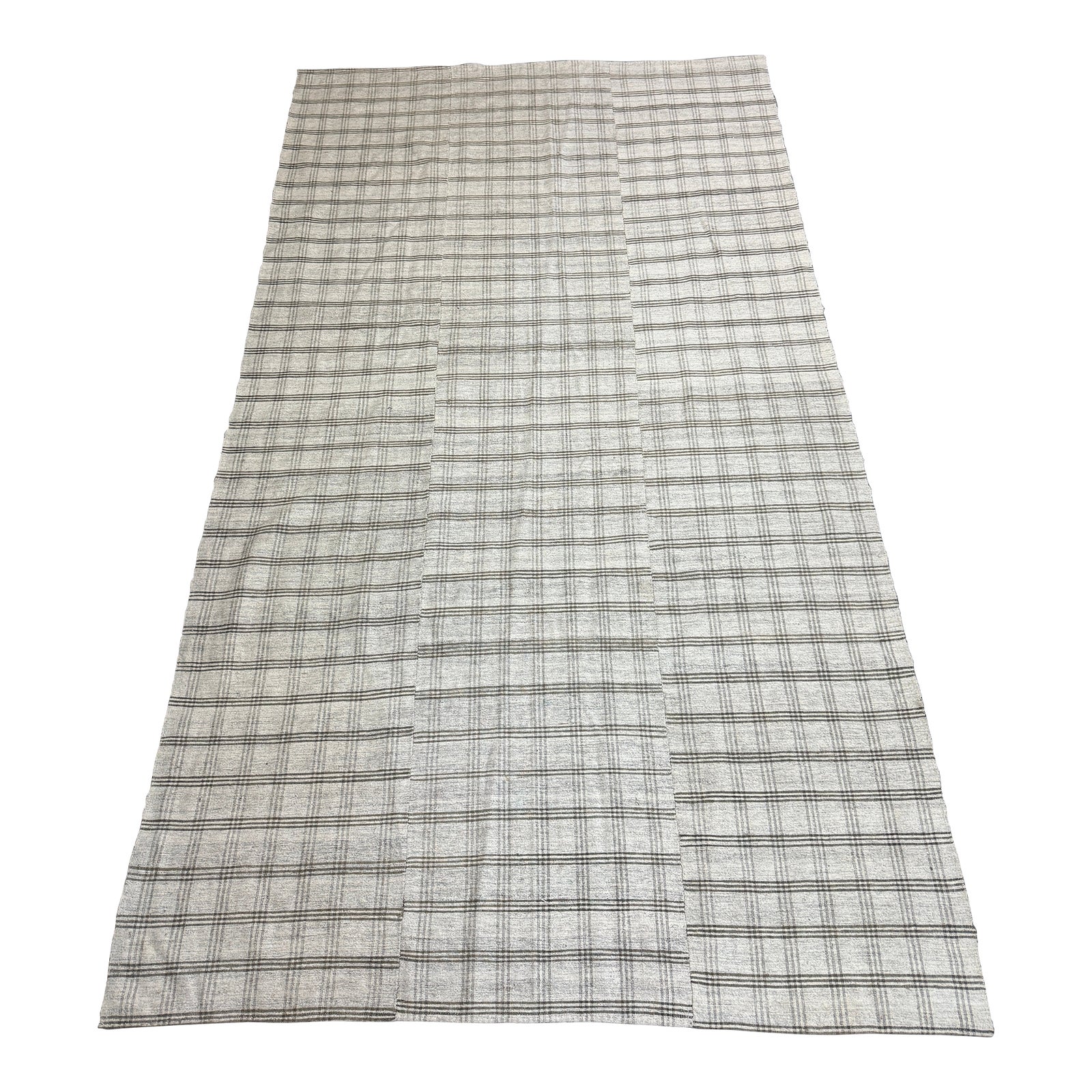 Design Plus Gallery presents a 5ft7in × 9ft9in Gracie Plaid Area Rug by Rug & Carpet. Classic flat weave is updated with the offset configuration of the black on white plaid. Soft underfoot, style and scale works in many spaces. Light soil; condition is fair for age and use.