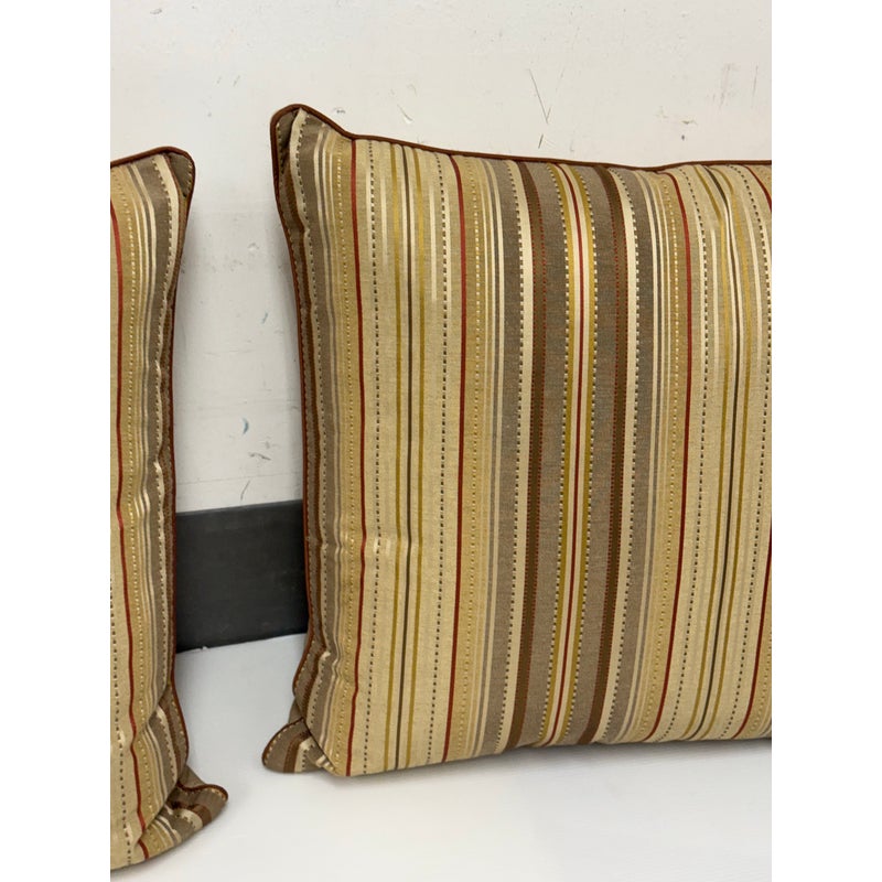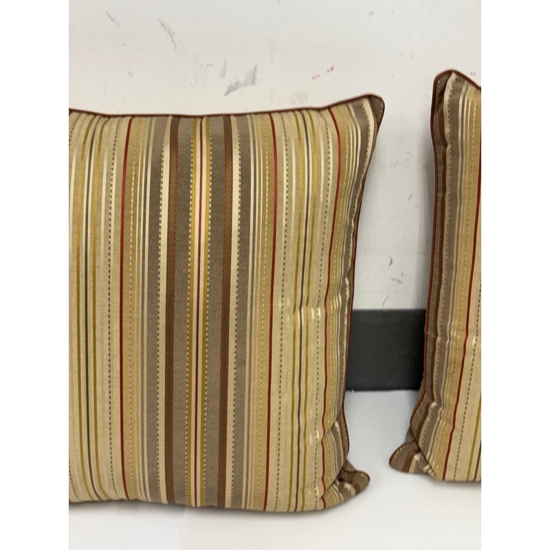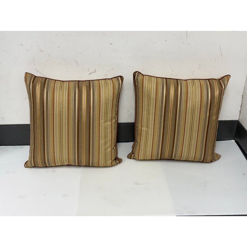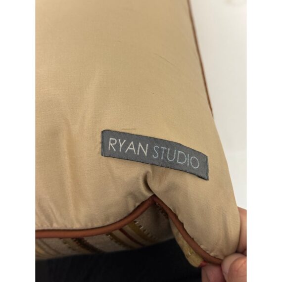 Design Plus Gallery presents a Pair of Ryan Studio Pillows. Known for their sophisticated and timeless designs, Debra Ryan, designer and founder of Legacy Home, has captivated the marketplace for more than 20 years creating and manufacturing high end bedding and accessories for the luxury market. Today, the RYAN STUDIO pillow collection includes stylish sophisticates, chic contemporaries, and crisp casuals all expertly tailored with standard feather-down fill and zipper closure. Each is produced domestically by the highly skilled artisans in our Virginia workrooms. These are in good condition with wear that is consistent with usage.