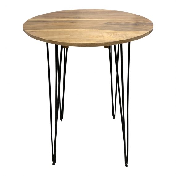 Design Plus Gallery presents a new salvaged wooden table. A round smooth surface with four metal legs. This mid-century style design is the perfect addition to your living space, game room office. The table has a clear coat finish to showcase its natural beauty. Handcrafted in Indonesia.
