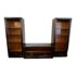 Design Plus Gallery presents a Transitional Media Center by Buying & Design, IT for Crate & Barrel. Each of the three pieces has a rich brown rubbed finish, natural woodgrain interior, and contemporary brass pulls. the pair of towers have adjustable shelves with cord access and shallow drawer for storage. The middle unit has space for a large television, a deep shelf and a pair of shallow drawers. Use together or as individual, sophisticated storage. Made in Italy. Light surface wear; condition is consistent with age and use.