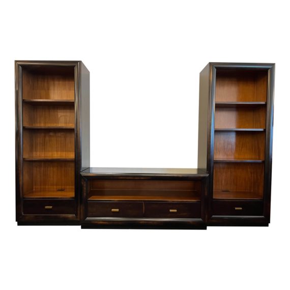 Crate & Barrel 3pc Transitional Media Centeret of Buying & Design Low Media Cabinet + Two Bookcases