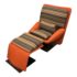 Design Plus Gallery presents a reclining lounge chair and matching ottoman for Saporiti Italia. Designed by Vittorio Introini in the 1970’s. This beauty had been newly reupholstered in a orange sunbrella fabric. They come with a matching pillow cushion set with navy blue, tan and white stripes shown in the photograph. The base of the chair and ottoman are metal in a dark finish. The chair has a lever on the right side to give the option to recline backwards. This is a Fabulous and VERY RARE design to find. Made in Italy.