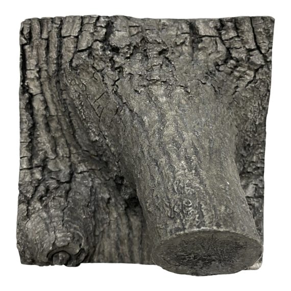 Design Plus Gallery presents a Sculptural Tree Wall Hanging. With the look of a Sharp slice from a tree, wood grain has a burned black gray finish with a slight metallic sheen similar to charcoal. Minor wear on surfaces.