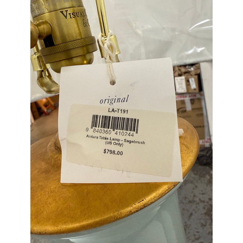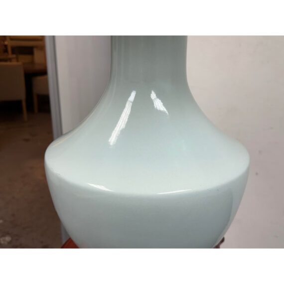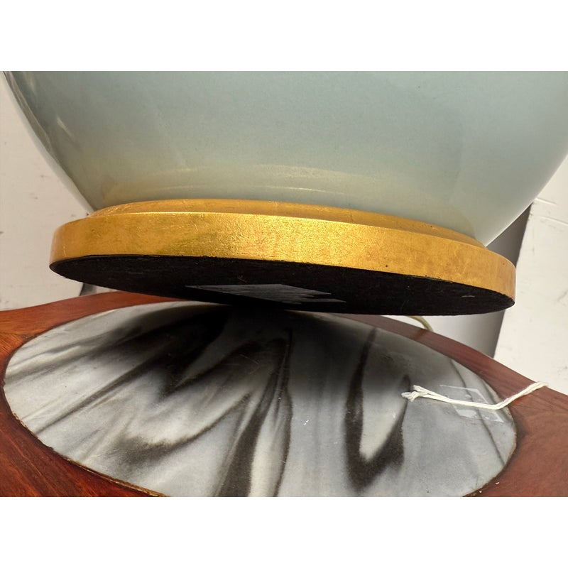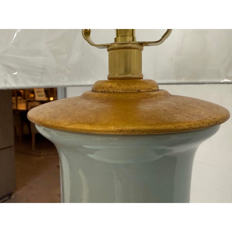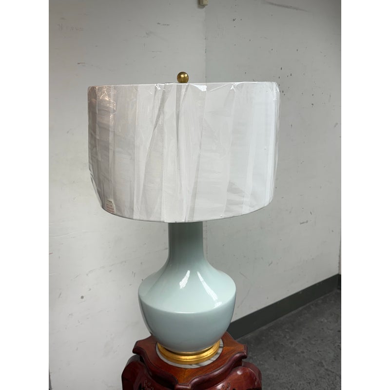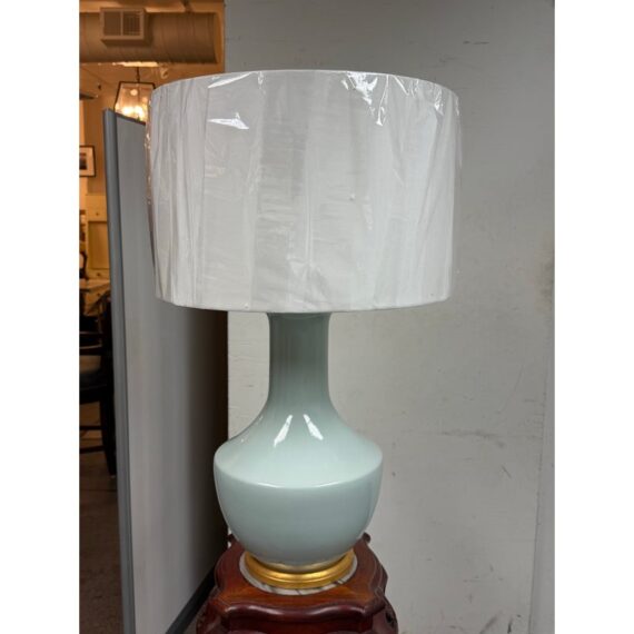 Design Plus Gallery presents a Ardara Table Lamp from Serena & Lily. The table lamp is in the style of vessels presented in an old world. The brand has chosen to make this line of lamps in colors that belong in nature. The ceramic is in a crackle finish and topped with a linen drum shade. Is in good condition for its usage. Made in Vietnam.