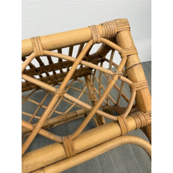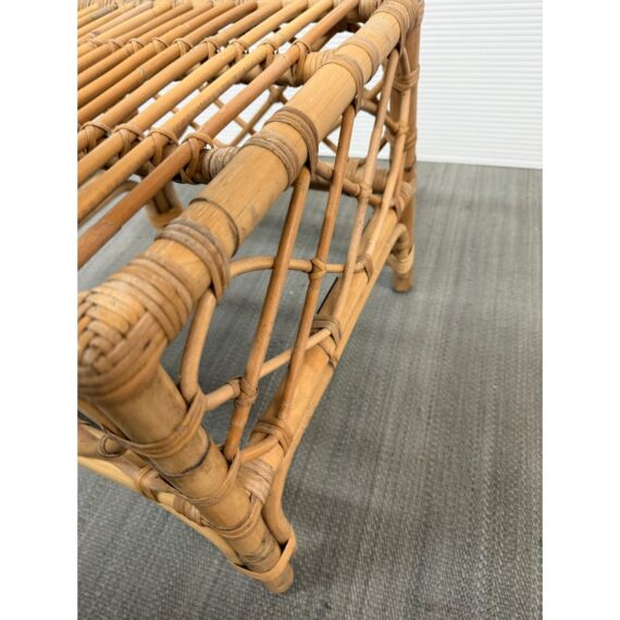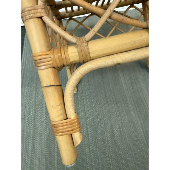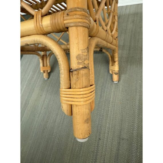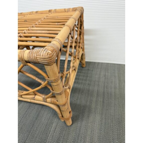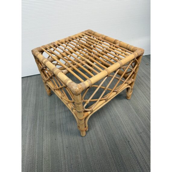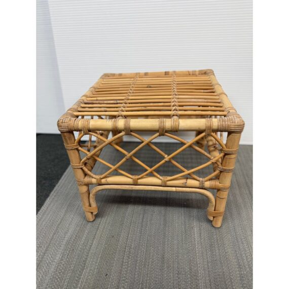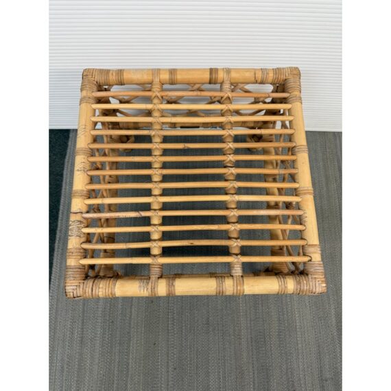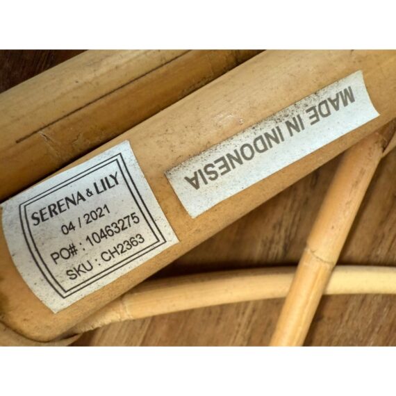 Design Plus Gallery presents the Avalon Stool by Serena & Lily. Handcrafted in Indonesia of natural rattan frame with hand-wrapped leather details. Open and airy, perfect for use as side table or top with cushion (not included) for extra seating. Light surface wear; condition is good.