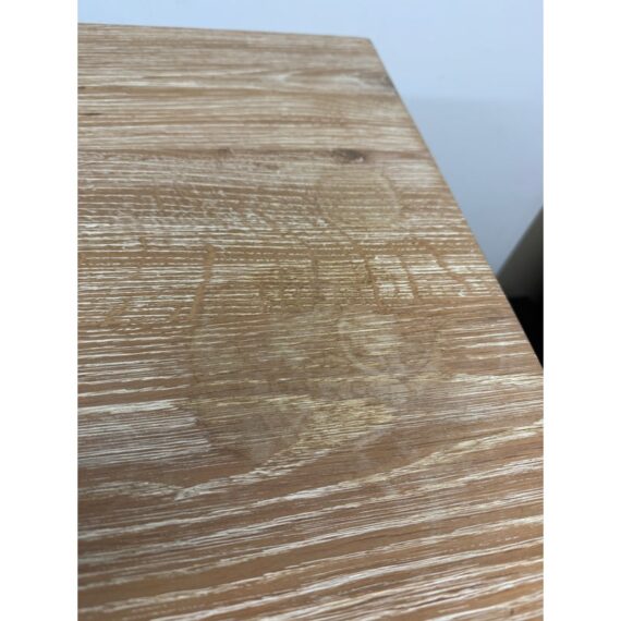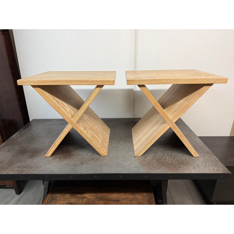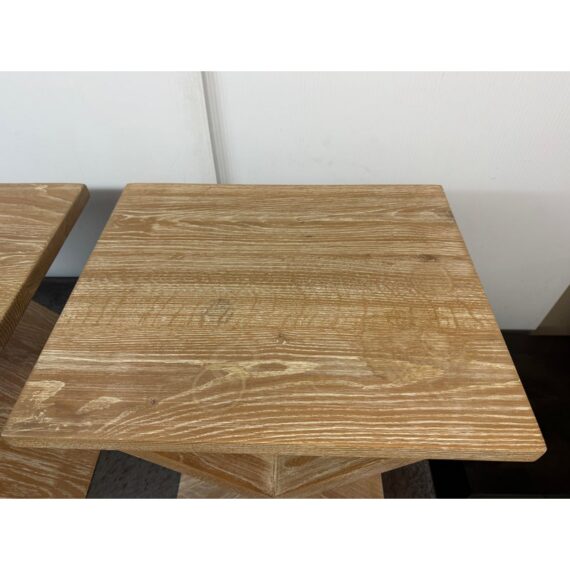 Design Plus Gallery presents a Pair of Hunter Side Tables from Serena & Lily. Crafted of sun-bleached pine with a spruce pine finish, the pair do double duty as book or magazine rack. Light wear; condition is good. Made in Vietnam.