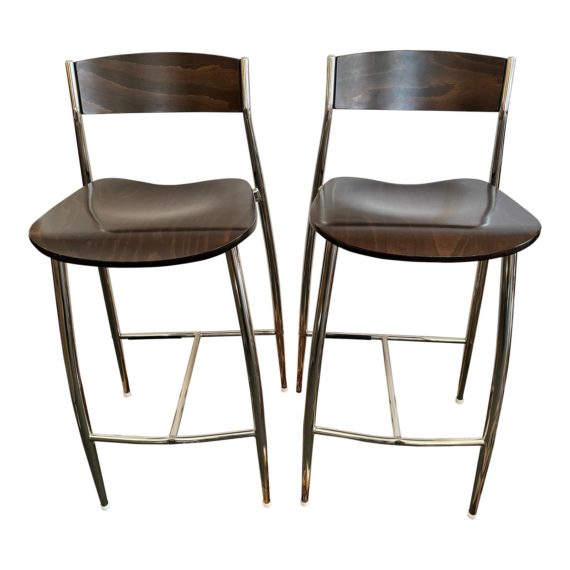 Sergio Mian Altek Baba Bentwood + Aluminum Counter Stools, a Pair