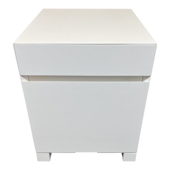 Design Plus Gallery presents a Modern File Cabinet by West Elm. Crafted of kiln dried hardwood and finished in a smooth white lacquer, this simple silhouette is all about smart function. A single deep file drawer and shallow drawer makes it a perfect match for a laptop modern office or small space. Center caster for ease of movement. Light evidence of wear